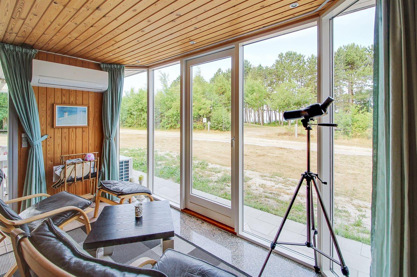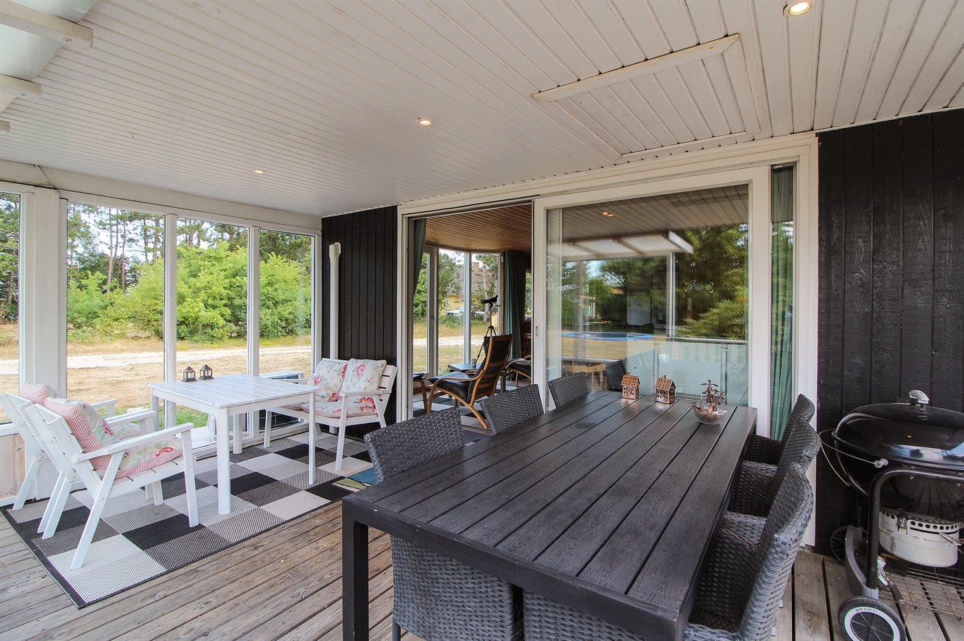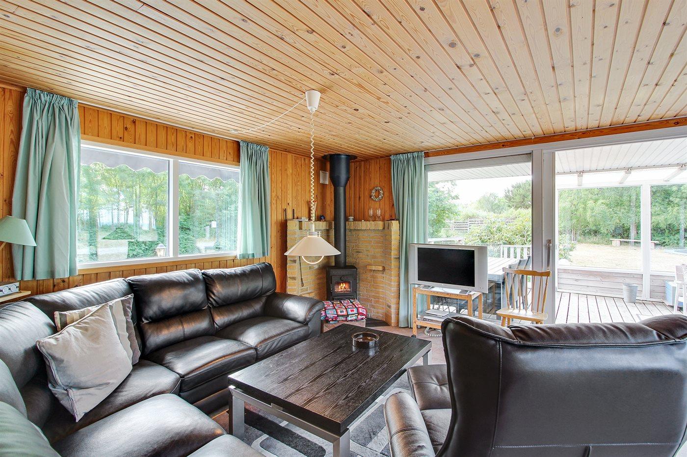 Ferieboligen er beliggende på en 1203 m² stor naturgrund. Der er 100 m til havet. Der er en badebro i nærheden. Nærmeste forretning er beliggende i en afstand af 1500 m. Til ferieboligen hører 25 m² terrasseareal. Desuden er der 16 m² overdækket terrasse. Der er redskabsrum. Trampolin. Der er carport til rådighed. Parkering ved ferieboligen.