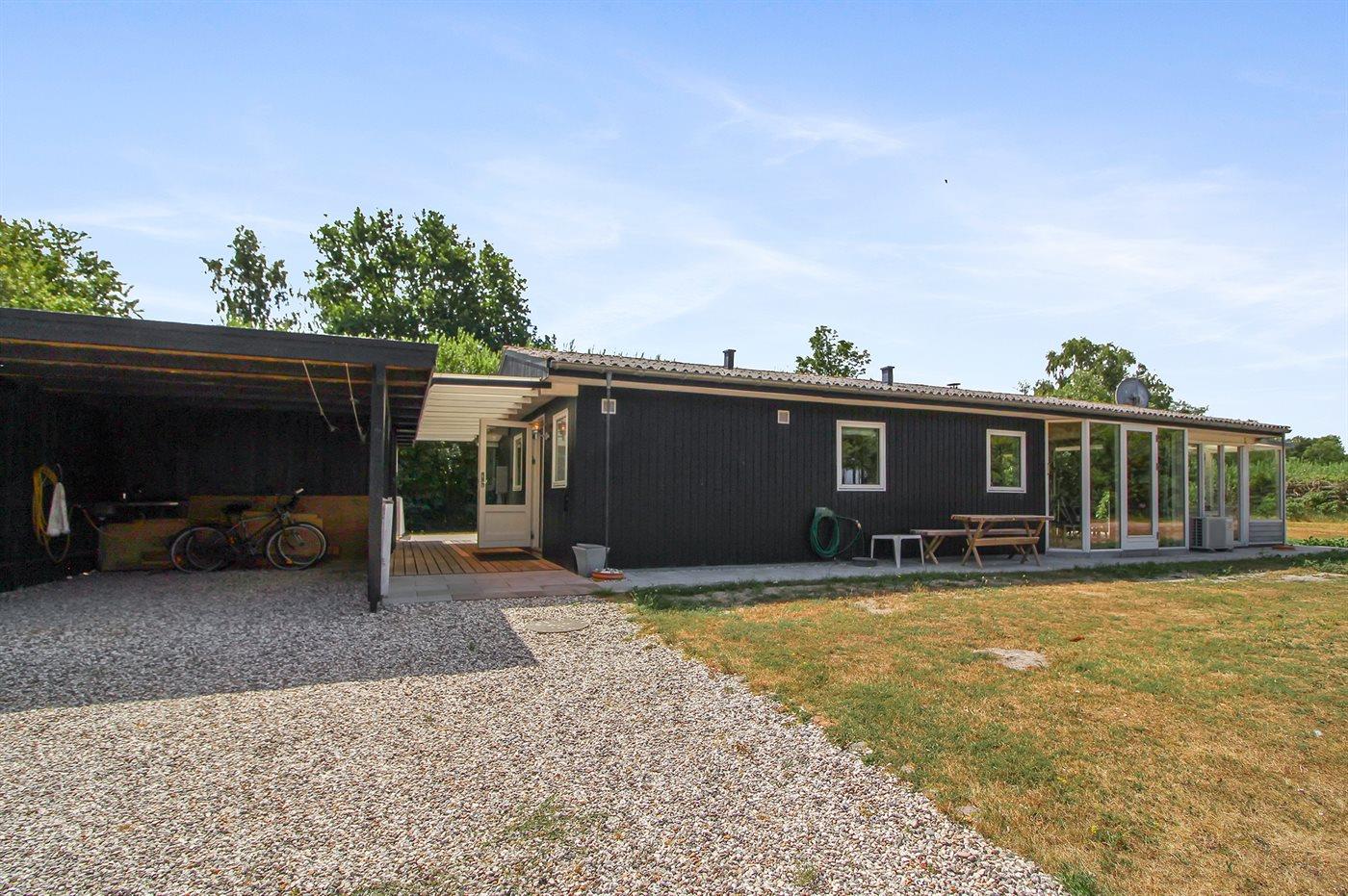 Charmerende sommerhus tæt ved havet med havudsigt, terrasse og carport i Bønnerup Strand.