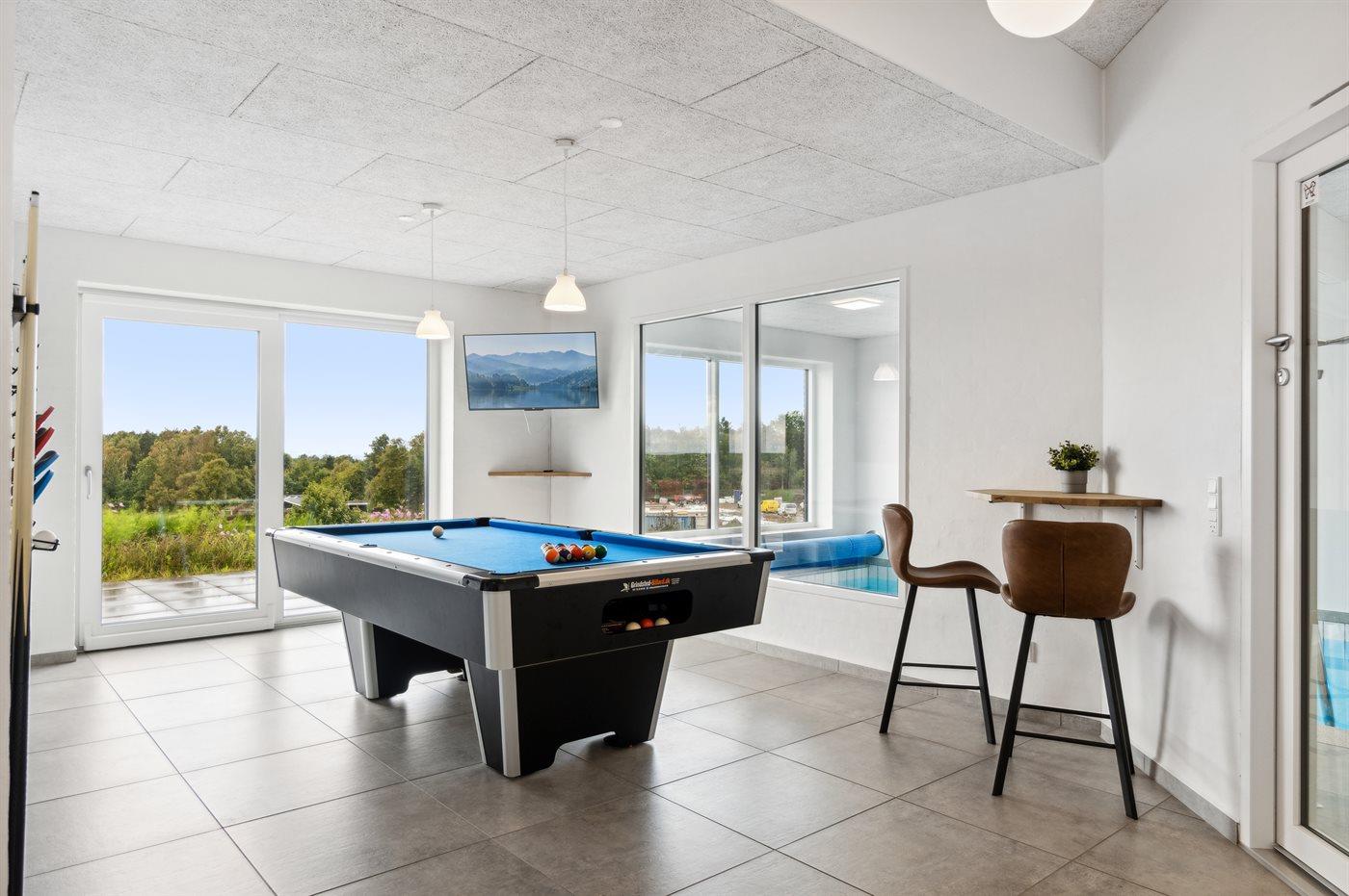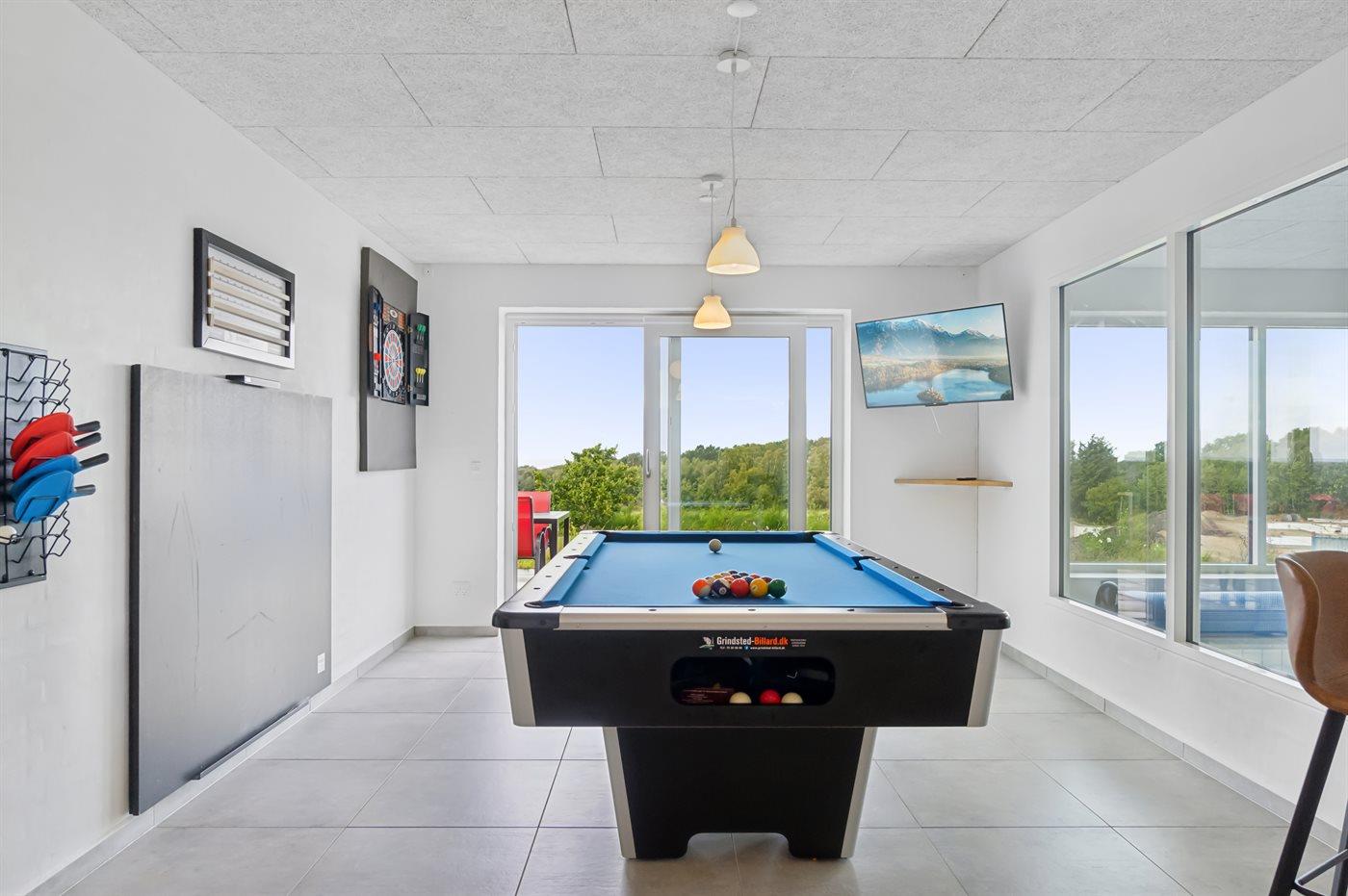 Underetagen byder på ren luksus og underholdning. Et stort poolrum med spa og sauna skaber en perfekt oase for afslapning, mens et aktivitetsrum med både billard, dart og bordtennis sikrer timevis af sjov for hele familien. Her finder du også to ekstra soveværelser, to yderligere badeværelser og direkte adgang til en smukt anlagt fliseterrasse, der leder videre til husets private og fredfyldte have. Huset ligger afsondret og i fredelige omgivelser, og alt er bygget med stor omtanke for at skabe et unikt feriehus, hvor både krop og sjæl kan finde ro.