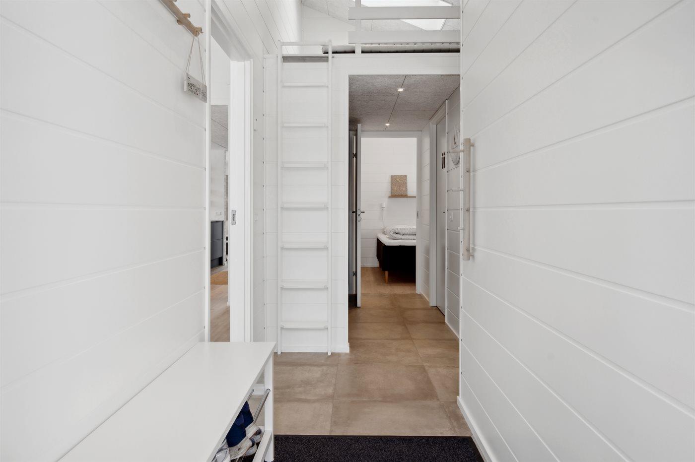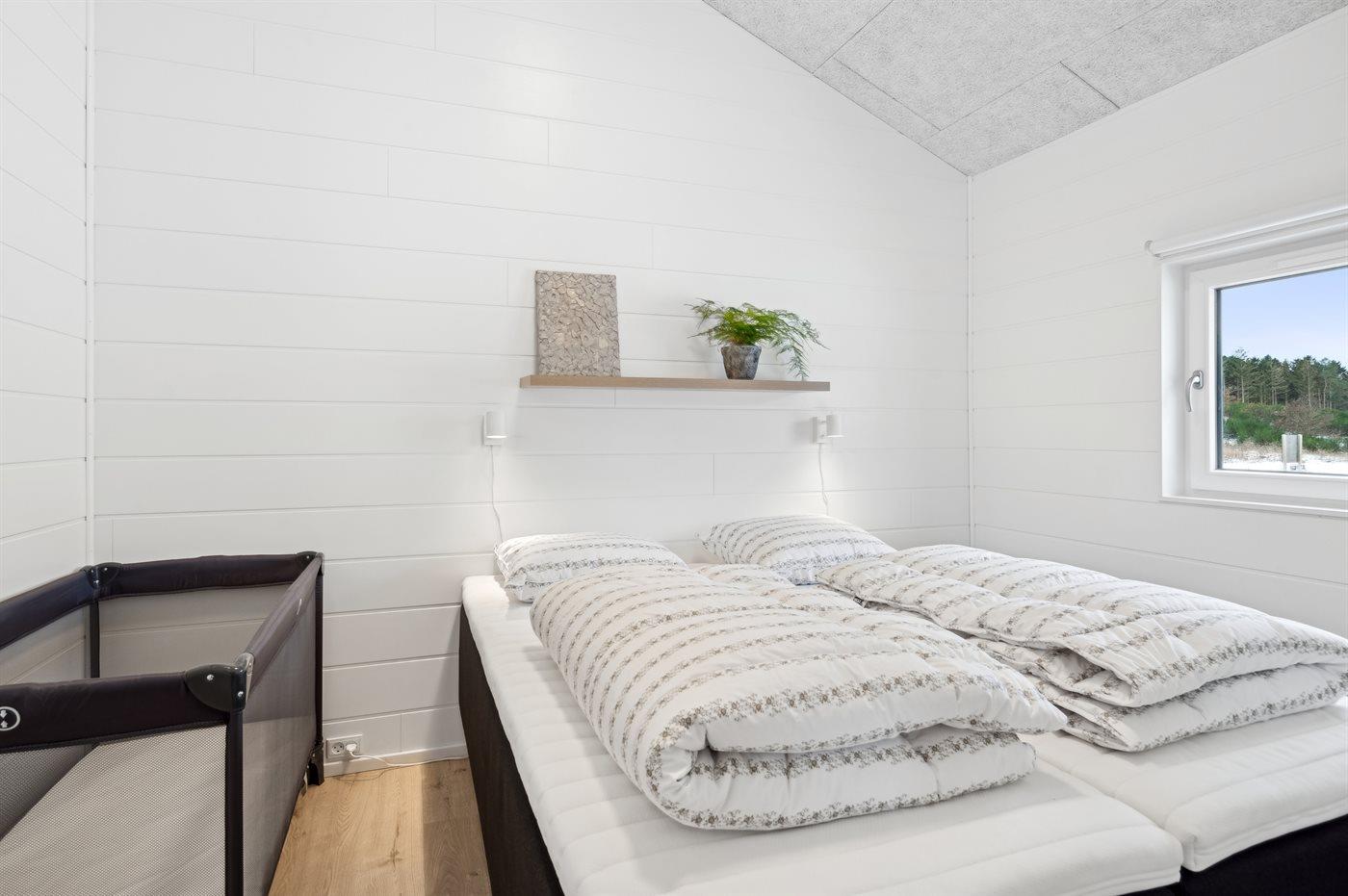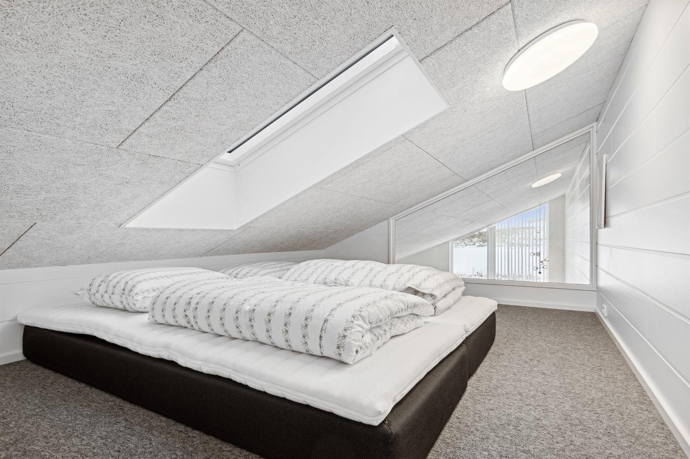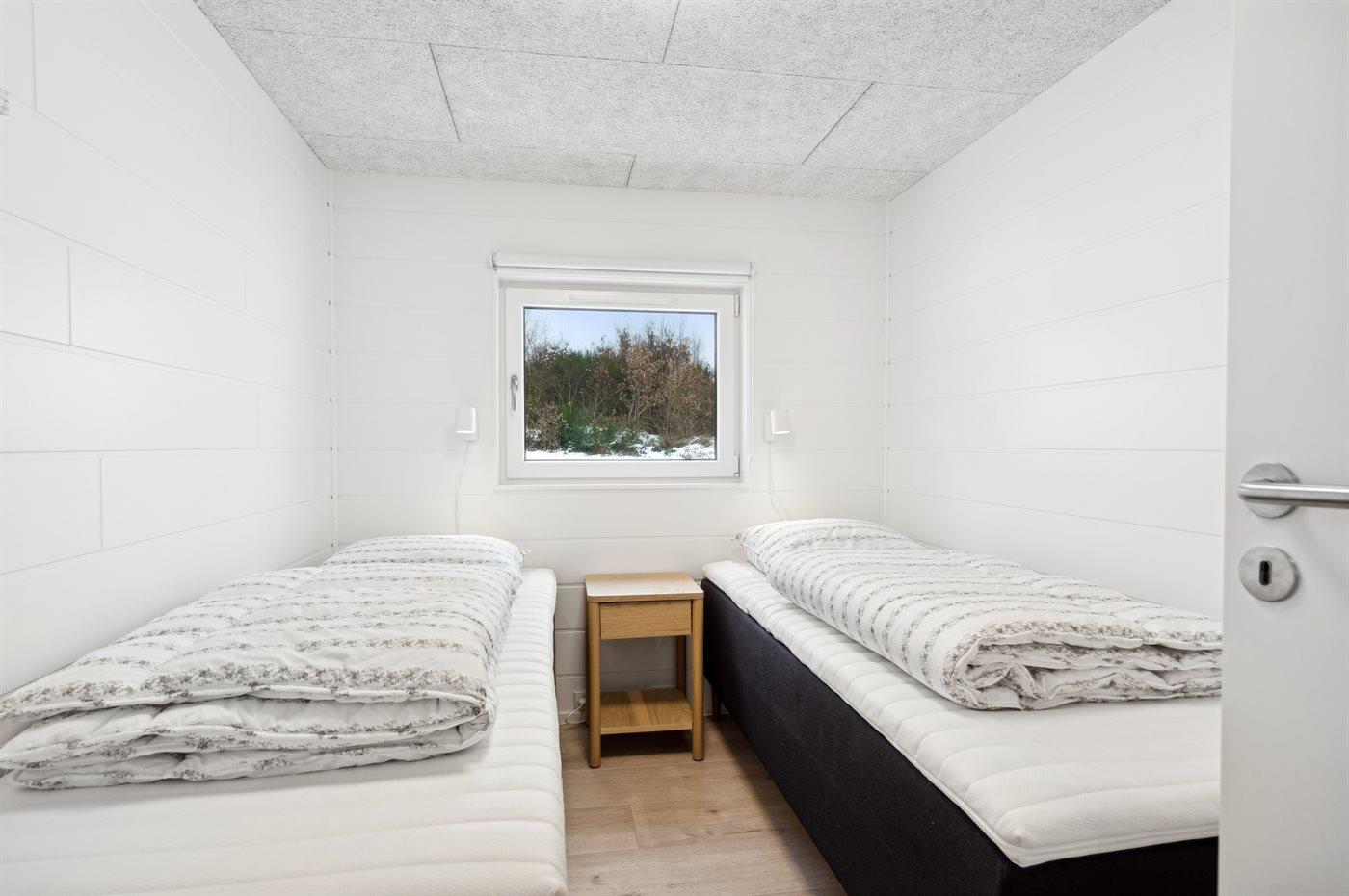 Der er i alt 7 soveværelser. Sovepladserne fordeler sig på: 8 sovepladser i dobbeltsenge. 2 sovepladser i enkeltsenge. 6 sovepladser i køjesenge. 6 sovepladser på madrasser. De 6 sovepladser på madrasser fordeler sig på 3 hemse. Derudover er der 1 stk. barneseng.