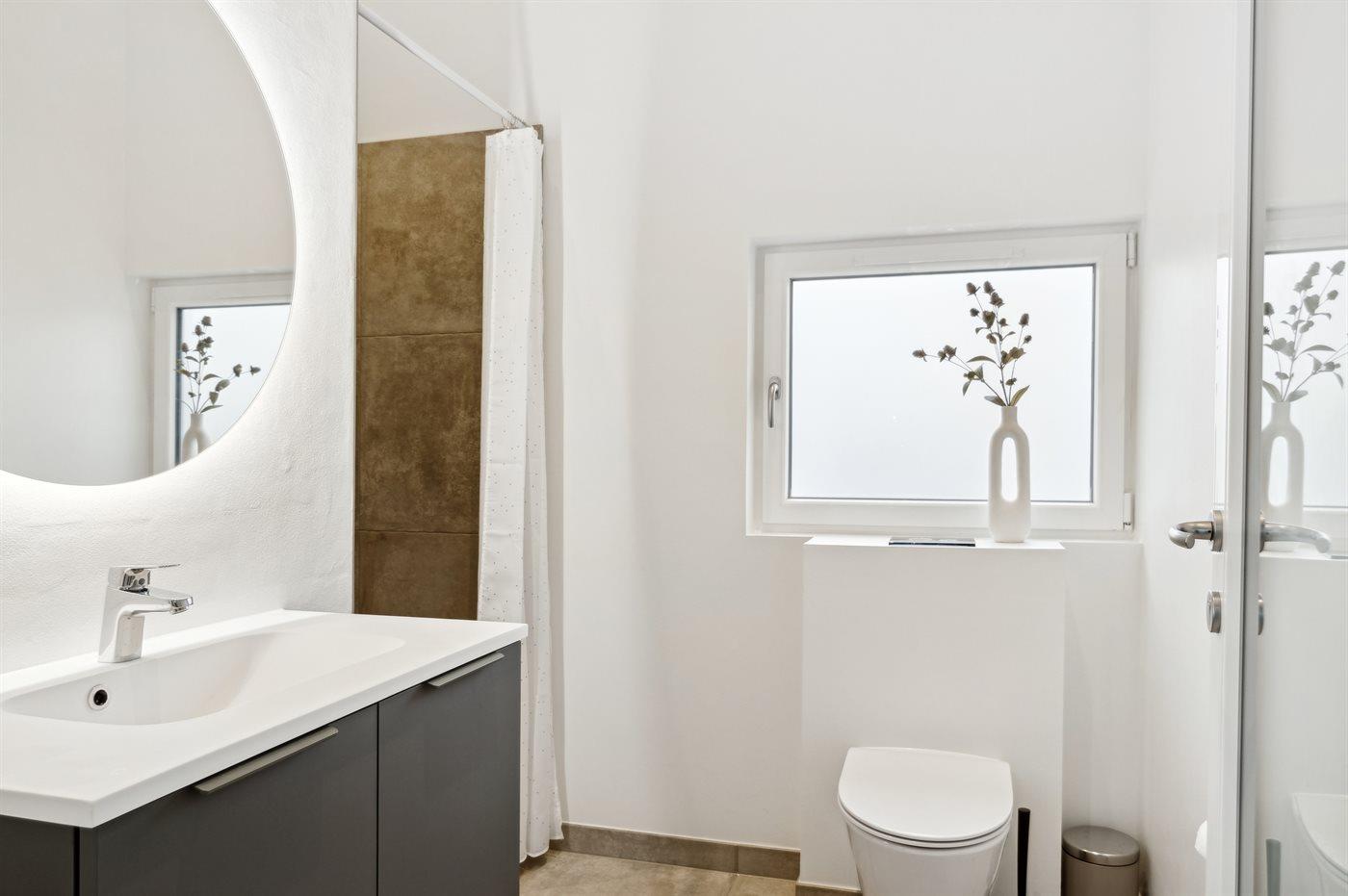 Der er 4 badeværelser med bruseniche og 3 toiletter. Der er gulvvarme på 4 badeværelser. I saunaen er der mulighed for afslapning.