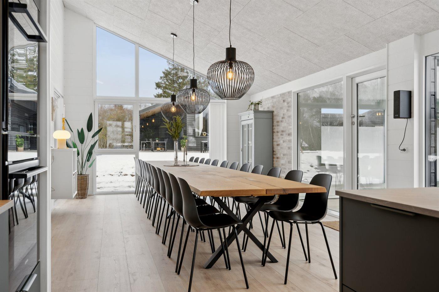 Sommerhuset egner sig til 22 personer. Ferieboligen er på 266 m² og er bygget i 2024. Det er tilladt at medbringe 1 husdyr. Ferieboligen er udstyret med 1 energivenlig luft til vand varmepumpe. Hele ferieboligen har gulvvarme. Ferieboligen har vaskemaskine. Tørretumbler. Frysekapacitet på 160 liter. Der er desuden brændeovn. Til de små er der 2 stk. barnestole.