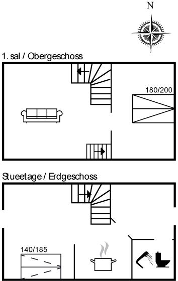 Der er i alt 1 soveværelse. Sovepladserne fordeler sig på: 2 sovepladser i dobbeltseng. 2 sovepladser i enkeltsenge. 2 sovepladser i sovesofa (dobbelt). 2 af disse sovepladser befinder sig i opholdsstuen og 2 af dem befinder sig på hemsen. Derudover er der 1 stk. barneseng.