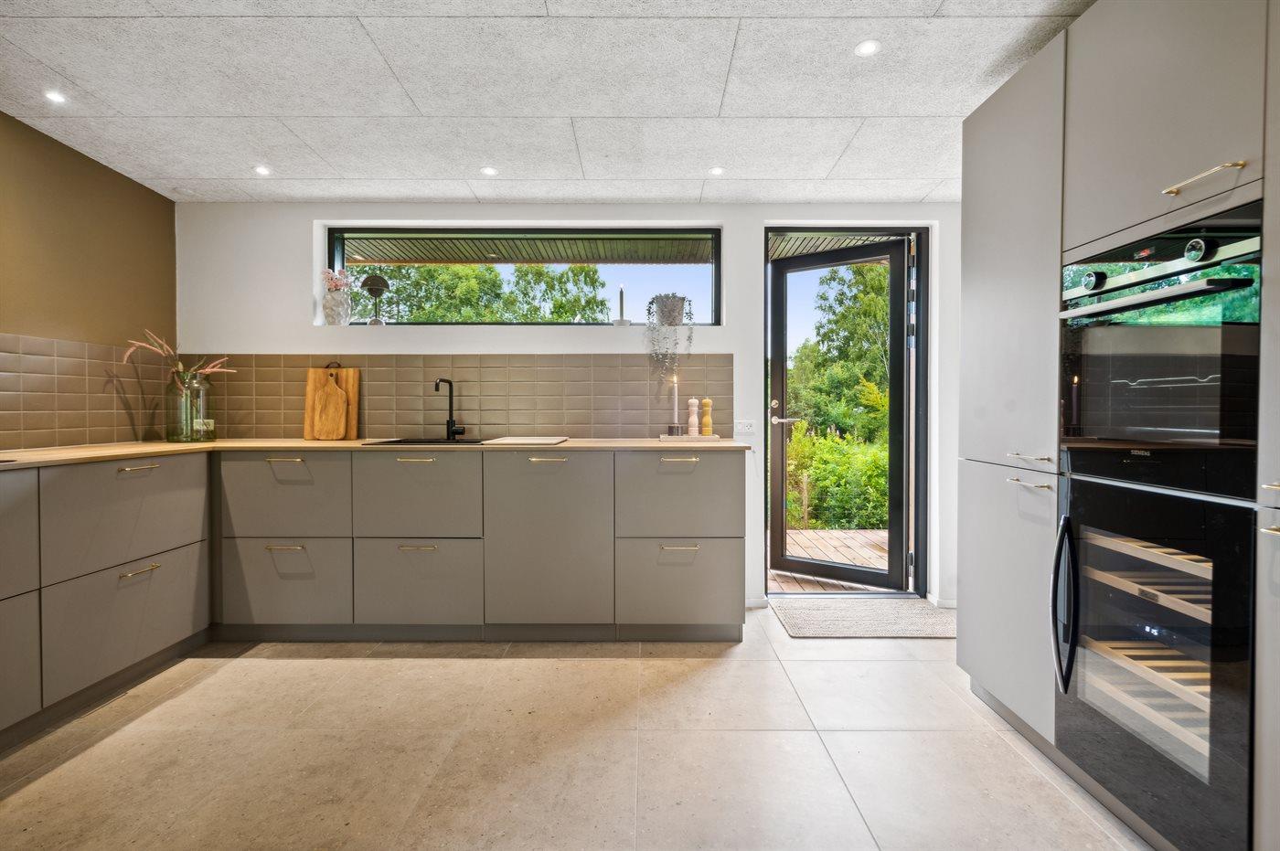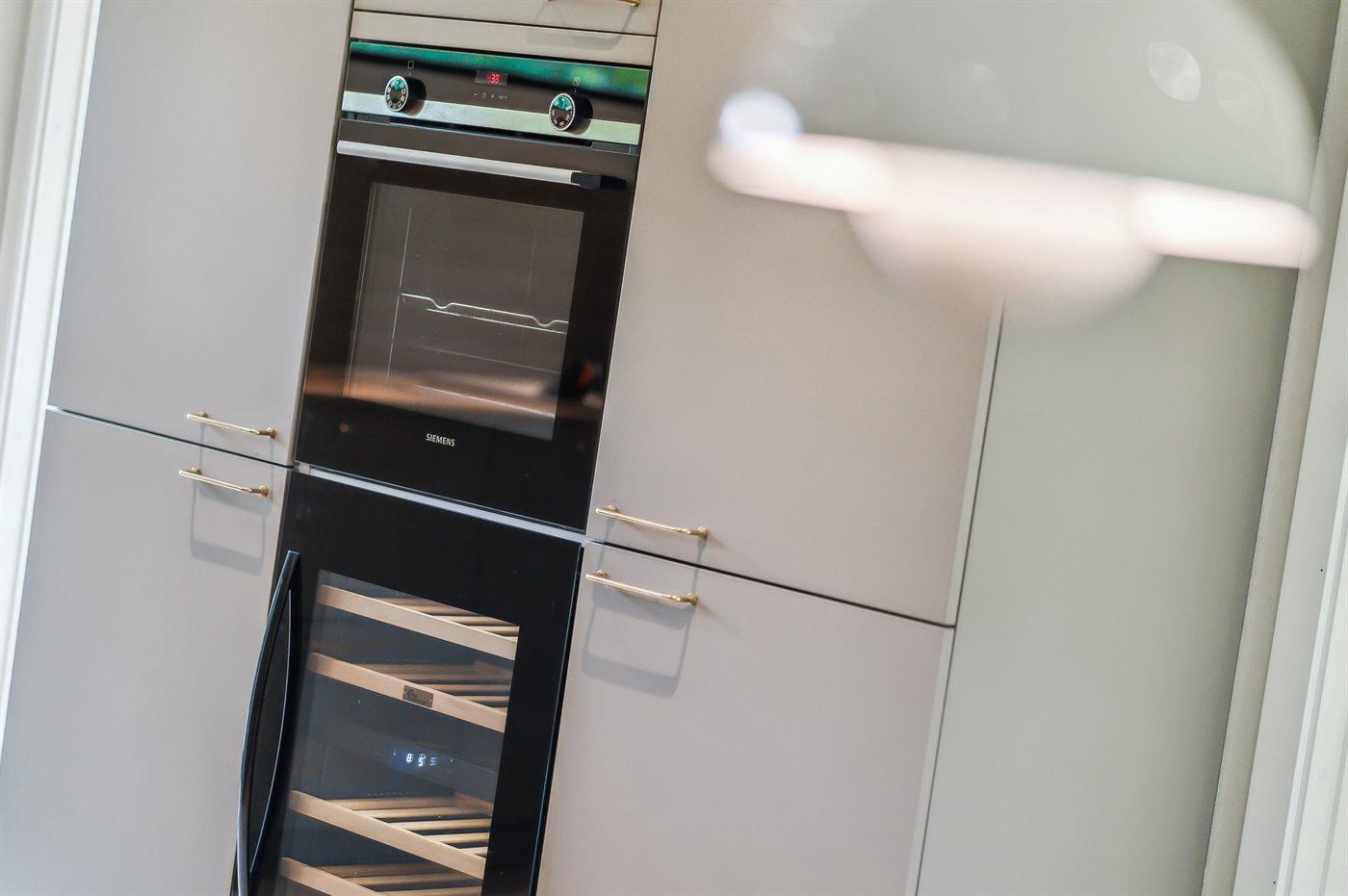 Køkkenet er udstyret med 2 køleskabe. Der er 4 induktionskogeplader, varmluftovn, mikrobølgeovn samt opvaskemaskine. Desuden findes der et vinkøleskab.