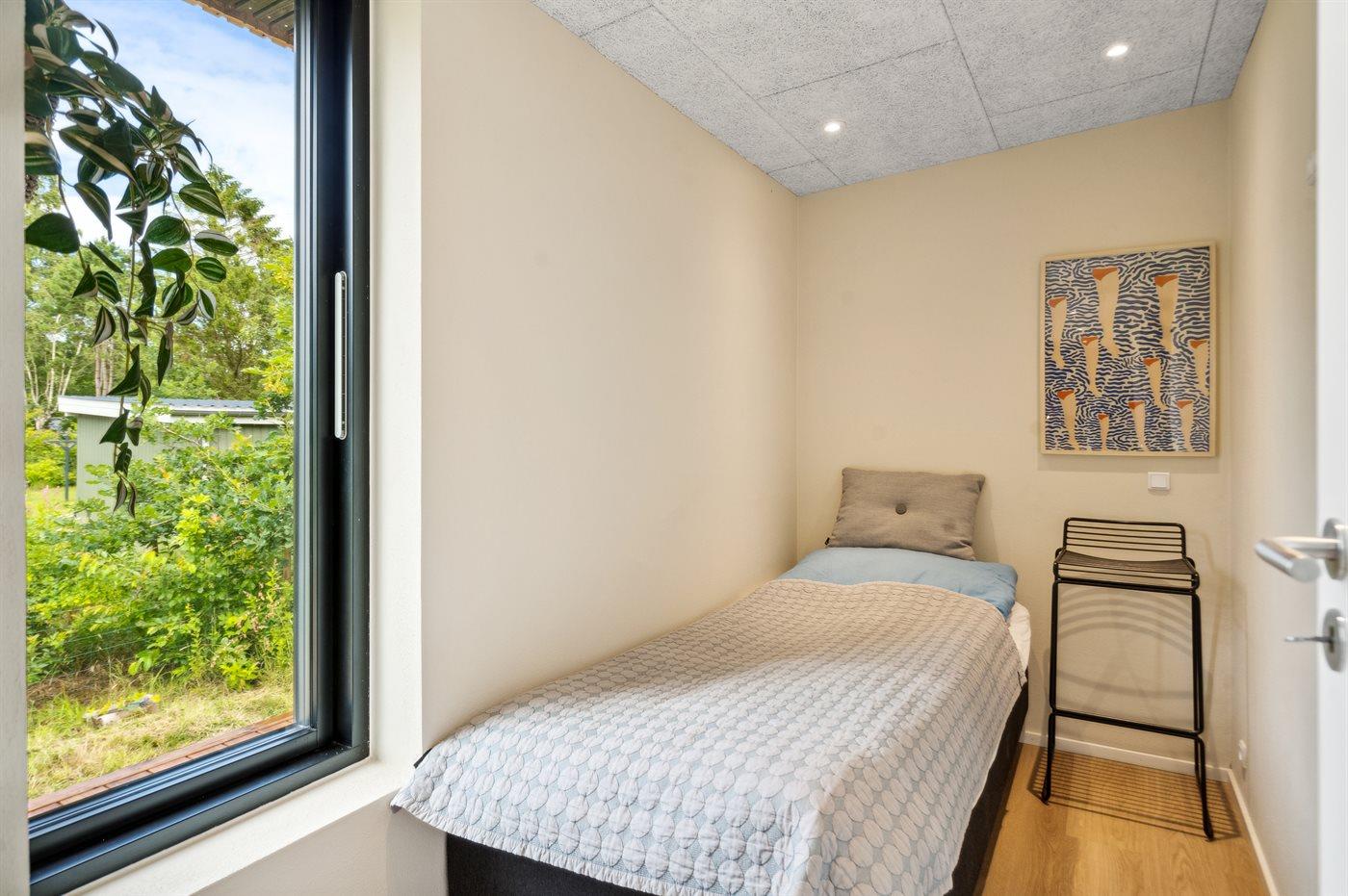 Der er i alt 4 soveværelser. Sovepladserne fordeler sig på: 6 sovepladser i dobbeltsenge. 1 soveplads i enkeltseng. 1 soveplads i alkove. 1 af disse sovepladser befinder sig i stuen.