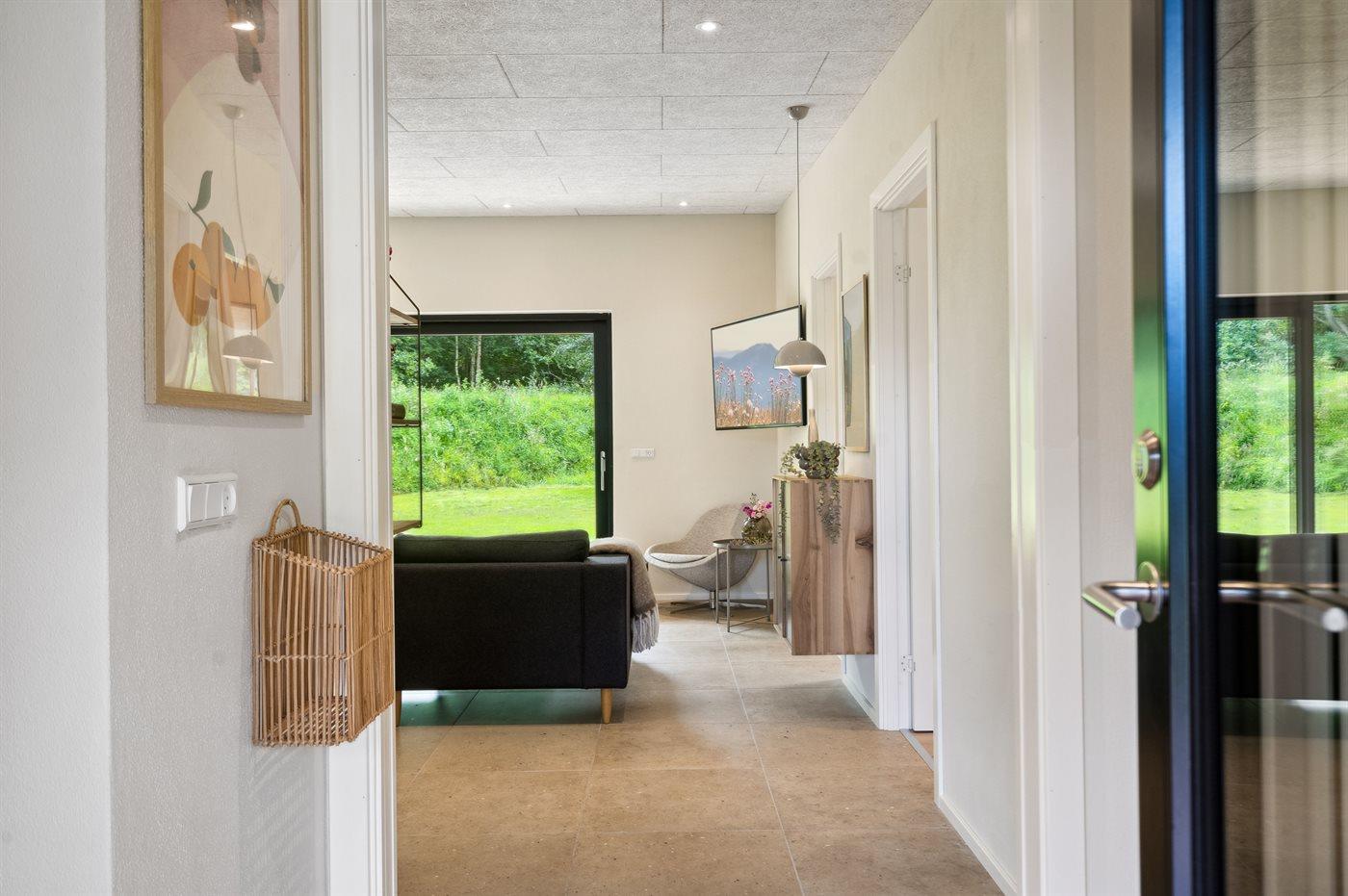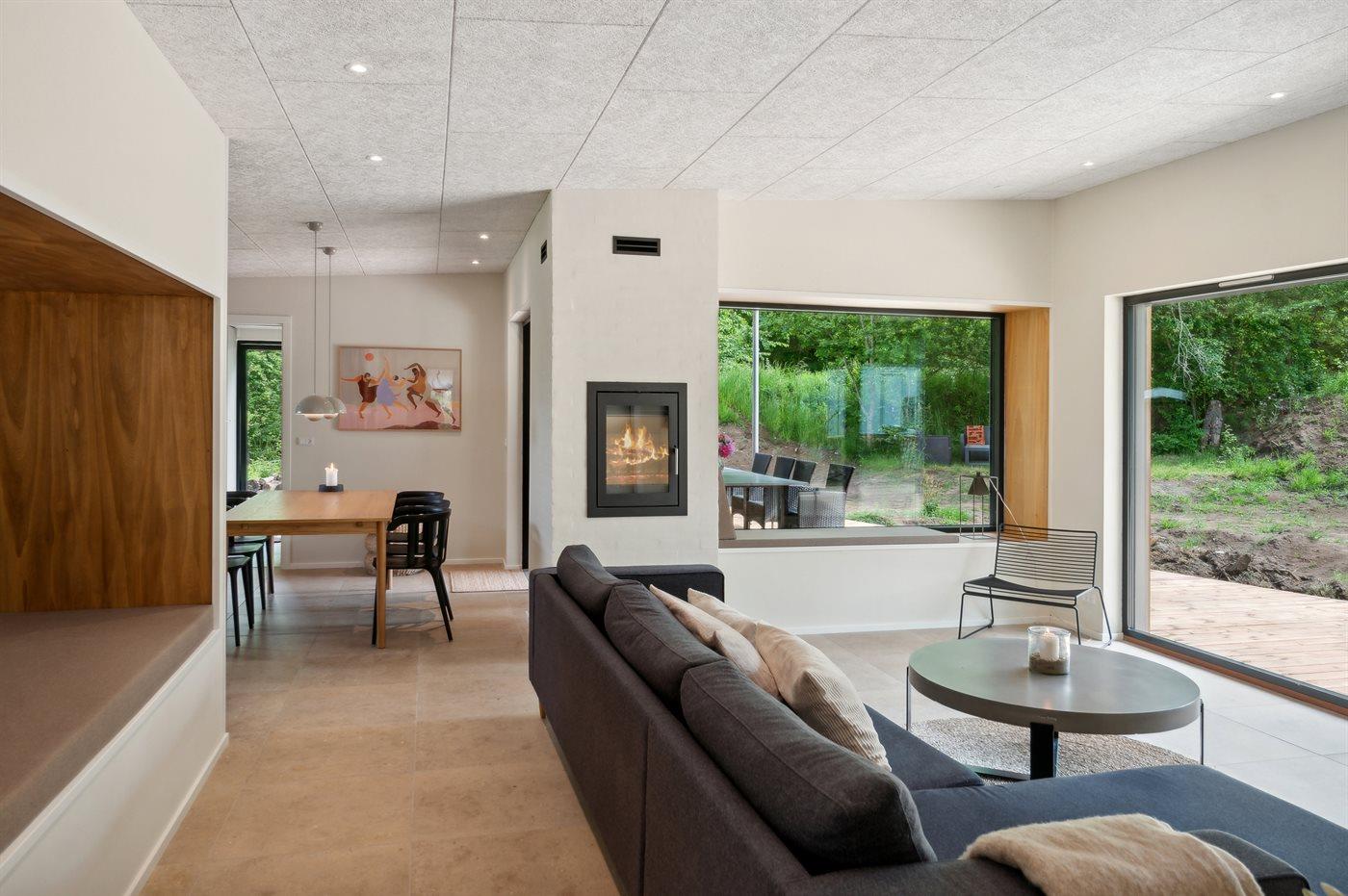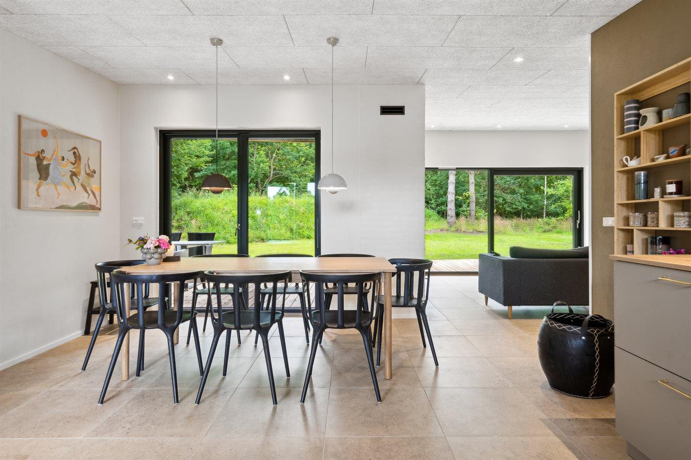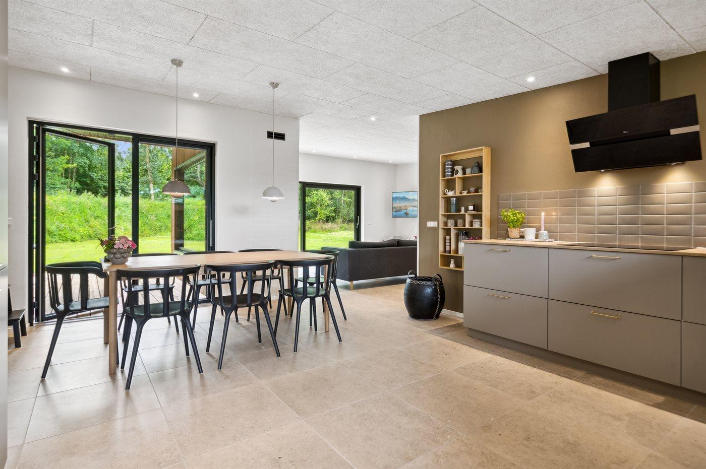 Midt i huset findes det store køkkenalrum med åben forbindelse til den dejlige stue med behagelige møbler til alle.