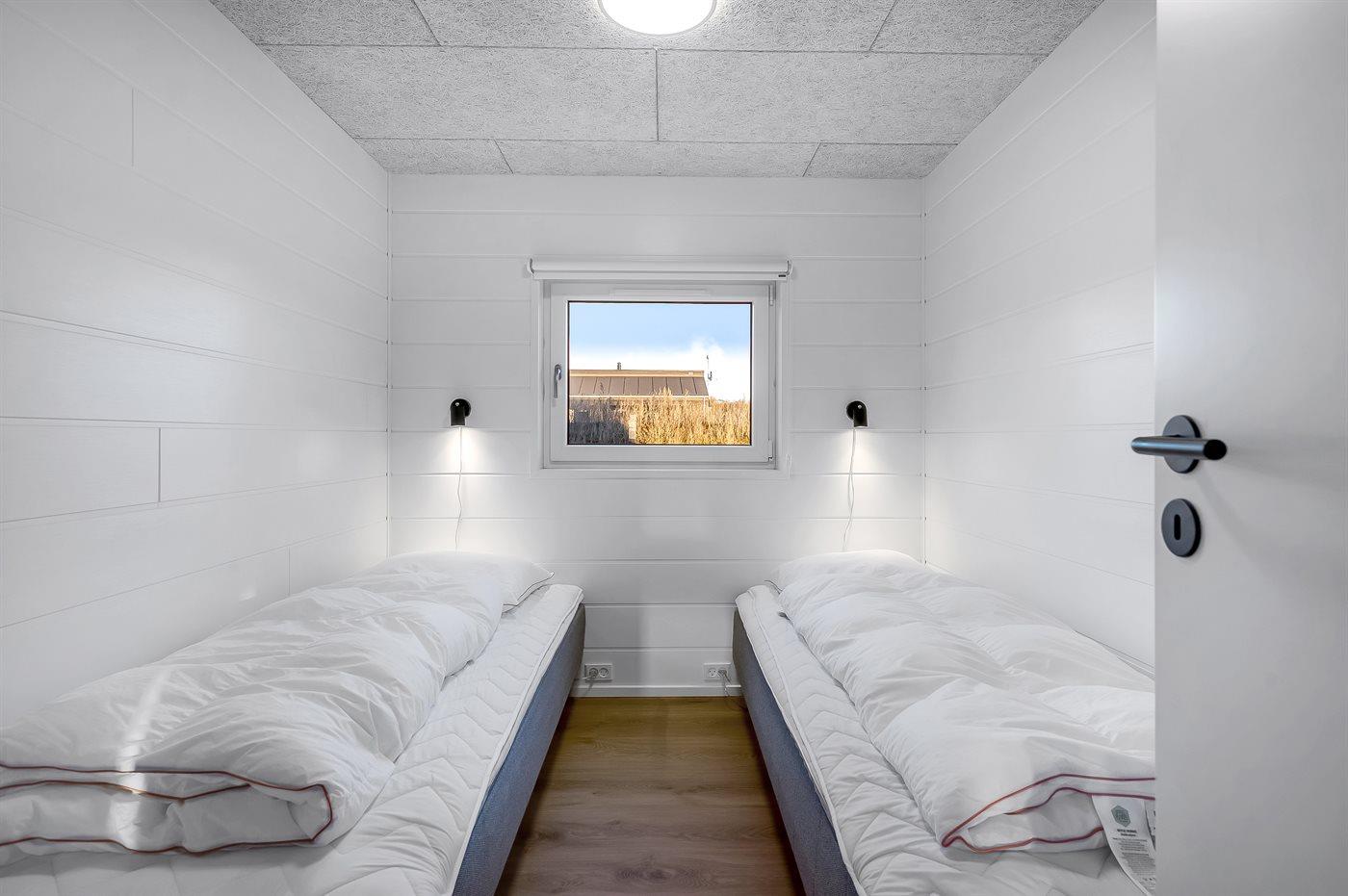 Der er i alt 7 soveværelser. Sovepladserne fordeler sig på: 8 sovepladser i dobbeltsenge. 2 sovepladser i enkeltsenge. 6 sovepladser i køjesenge. 6 sovepladser på madrasser. 6 af disse sovepladser befinder sig på husets hems.