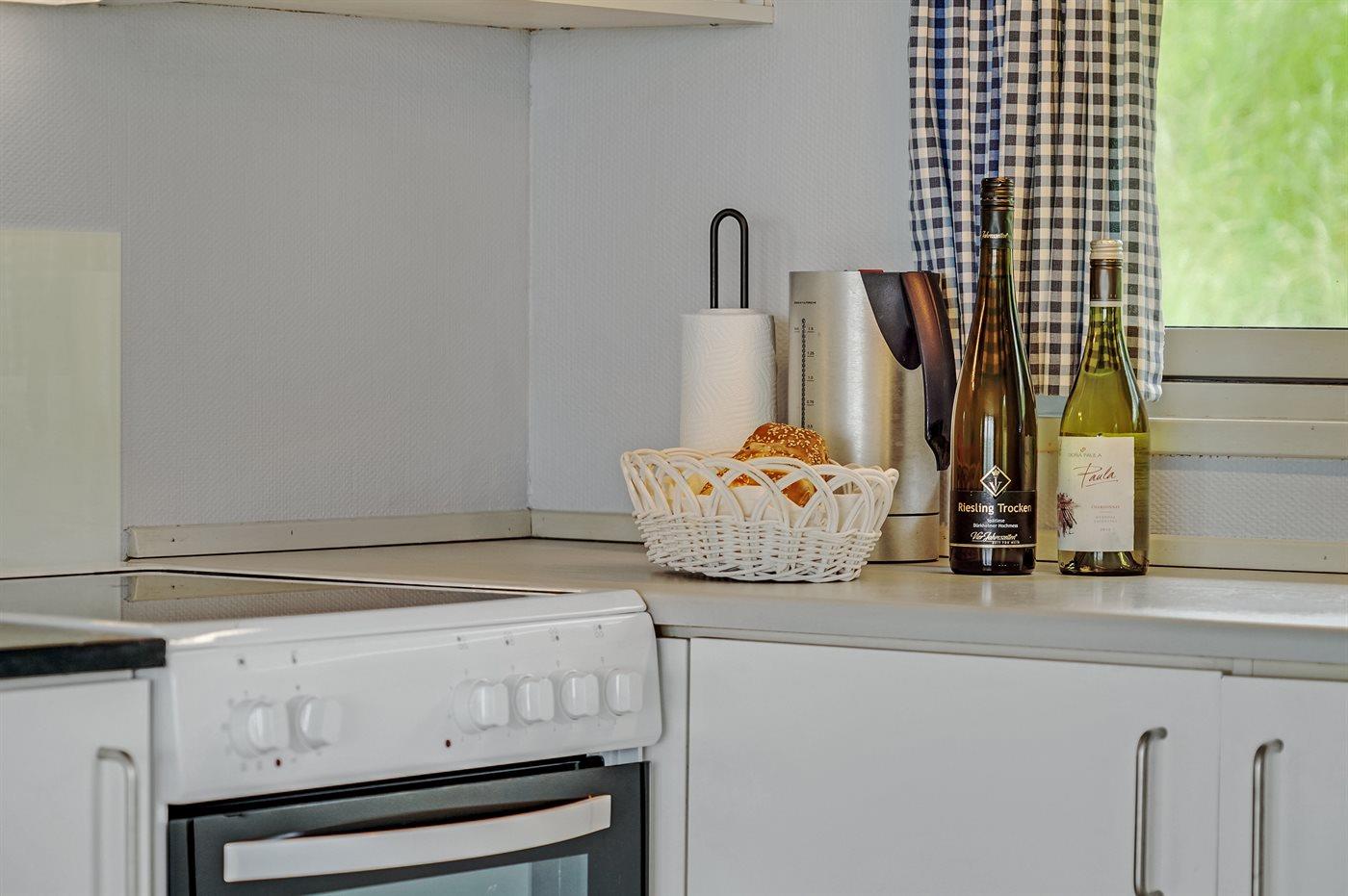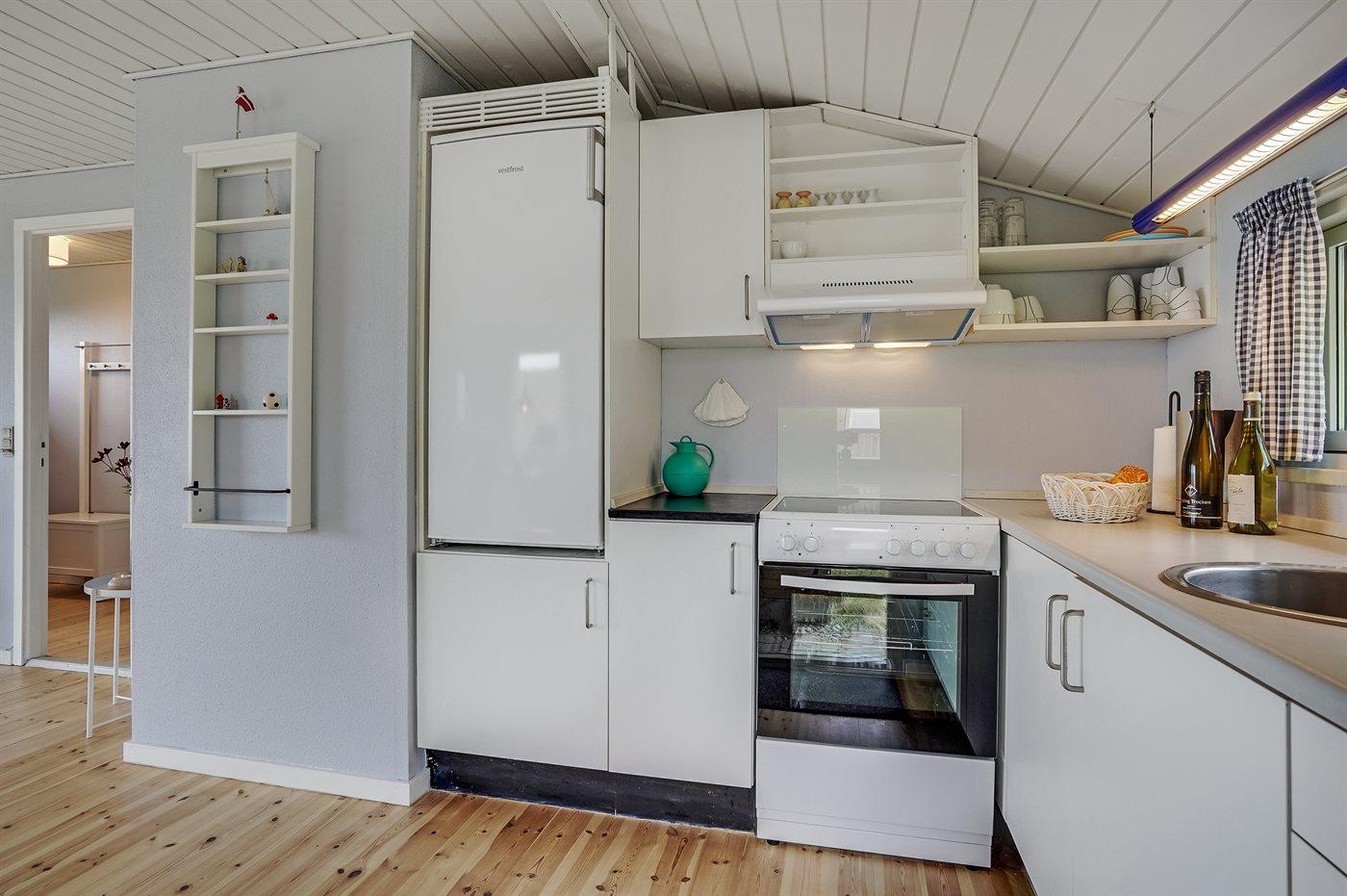 Køkkenet er udstyret med 1 køleskab. Der er 4 keramiske kogeplader, varmluftovn.