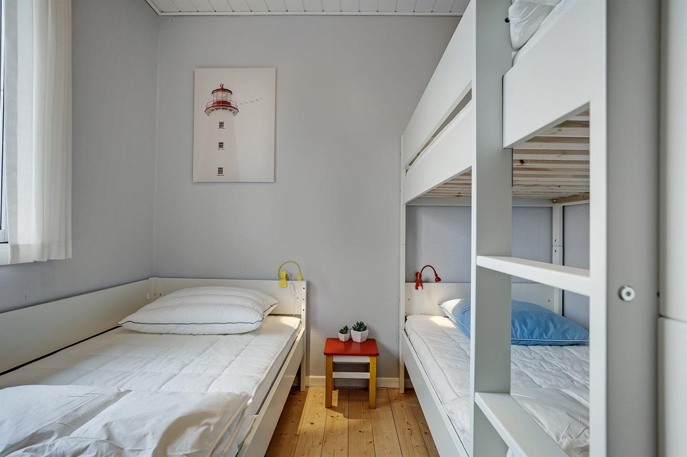 Der er i alt 2 soveværelser. Sovepladserne fordeler sig på: 2 sovepladser i dobbeltseng. 1 soveplads i enkeltseng. 2 sovepladser i køjeseng.