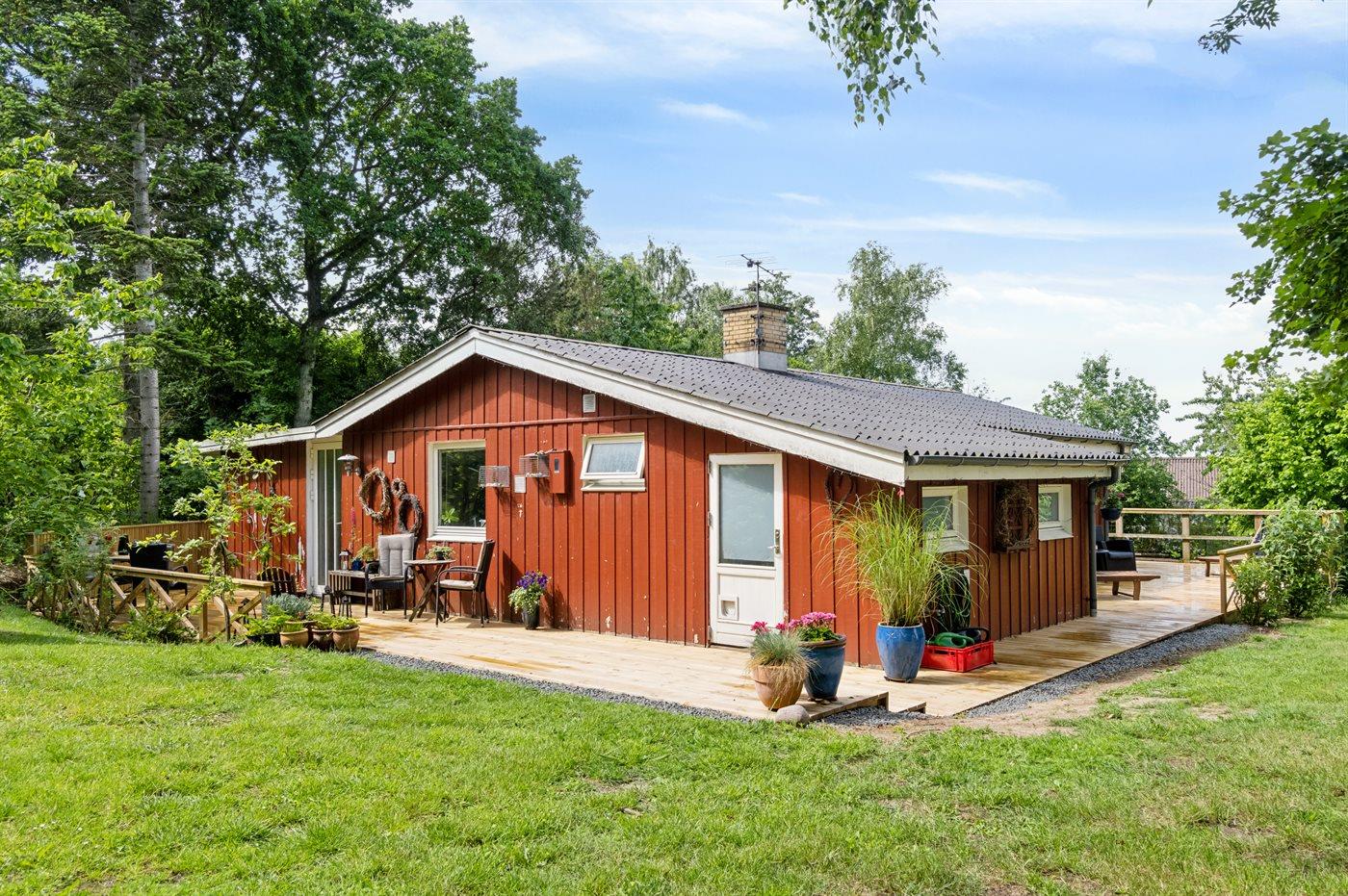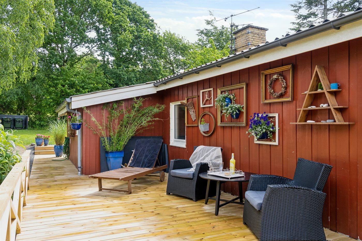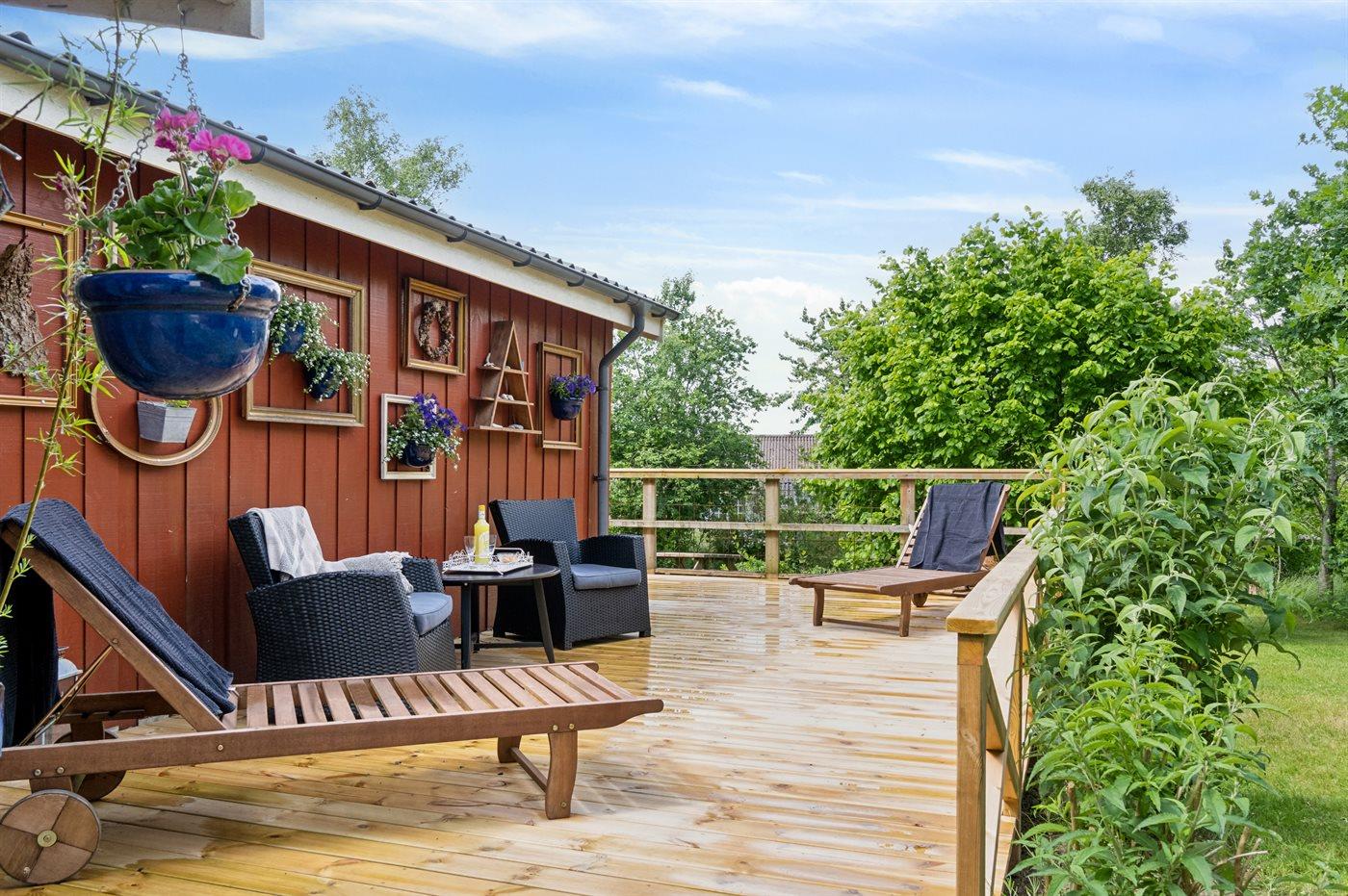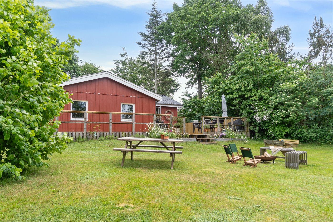 Dette sommerhus ligger på en ugeneret grund med udgang til skønne terrassearealer. Her findes gode udendørsmøbler, hvor i solen kan nydes i naturskønne omgivelser. Havet og den gode badestrand ligger lige i nærheden. Desuden byder området på en hyggelig havn.