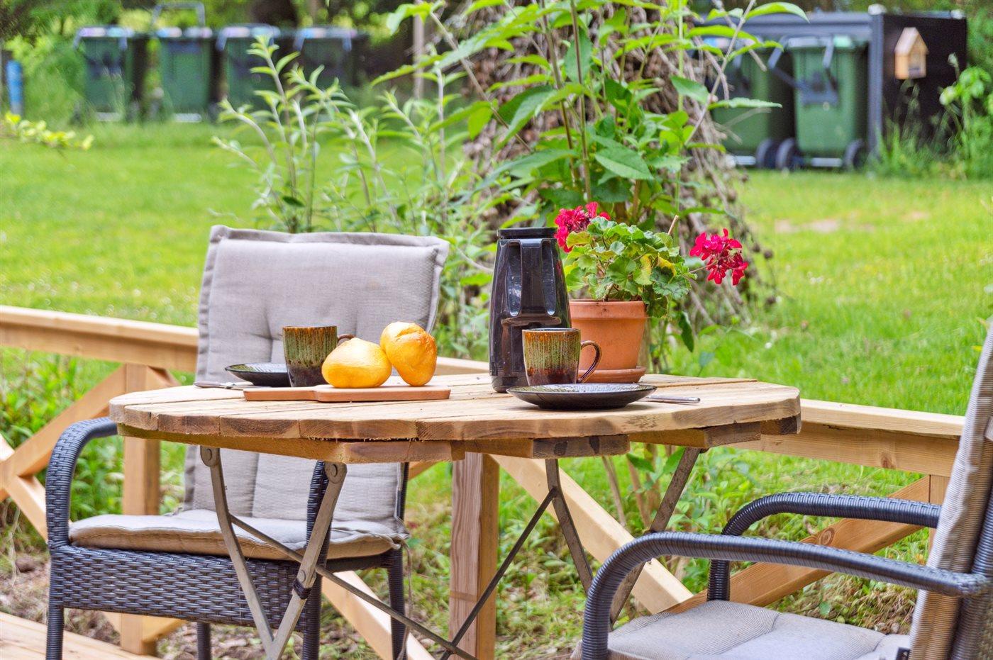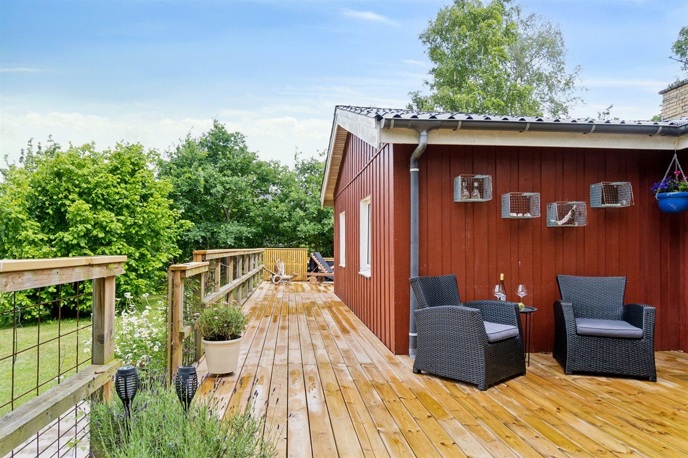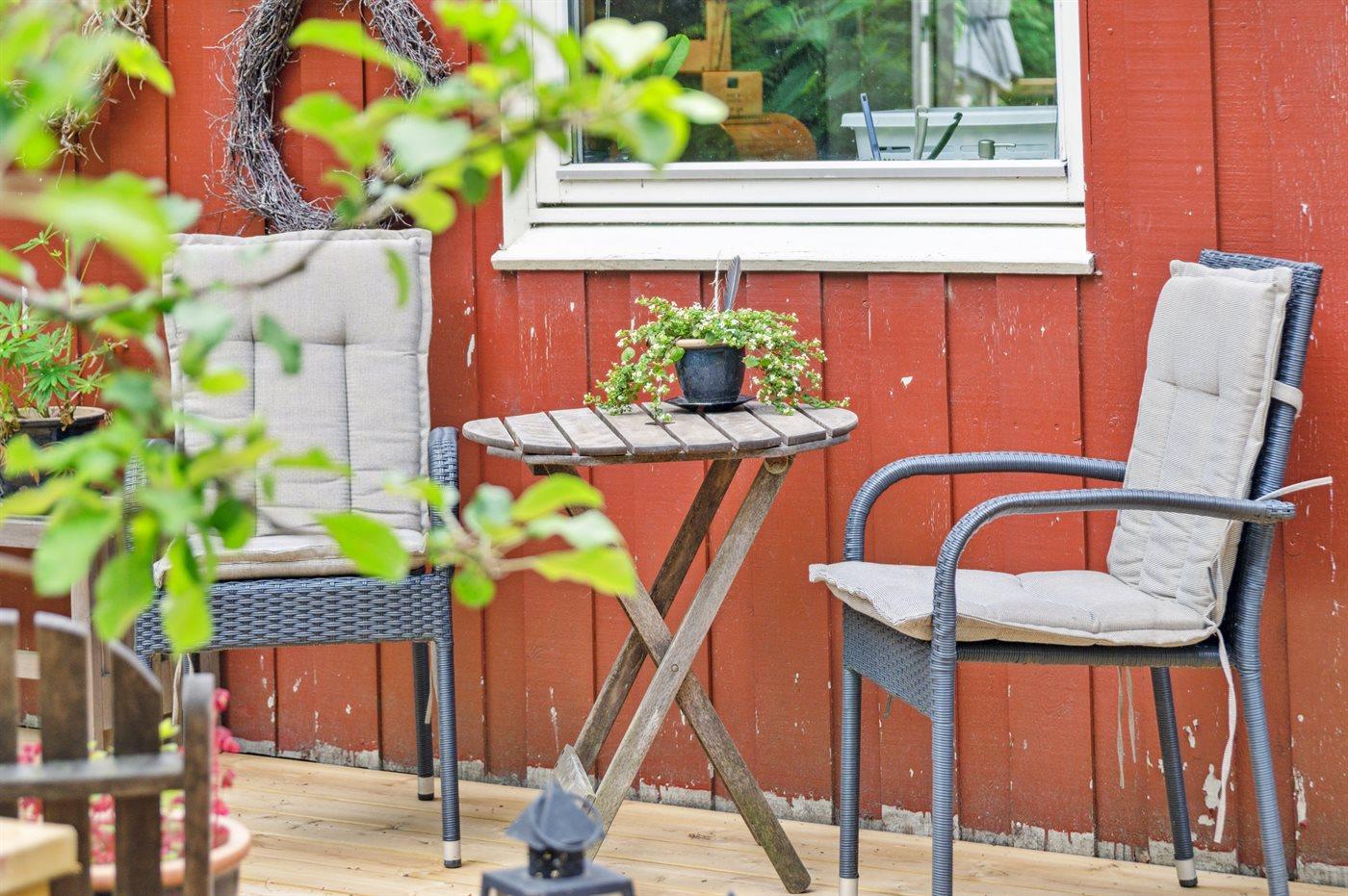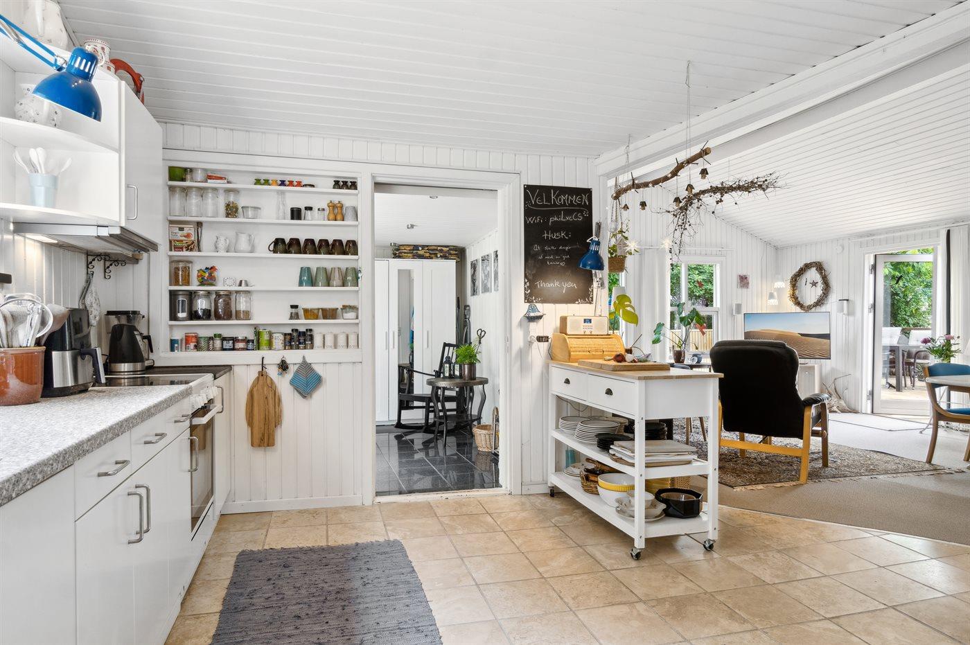 Dette sommerhus ligger på en ugeneret grund med udgang til skønne terrassearealer. Her findes gode udendørsmøbler, hvor i solen kan nydes i naturskønne omgivelser. Havet og den gode badestrand ligger lige i nærheden. Desuden byder området på en hyggelig havn.