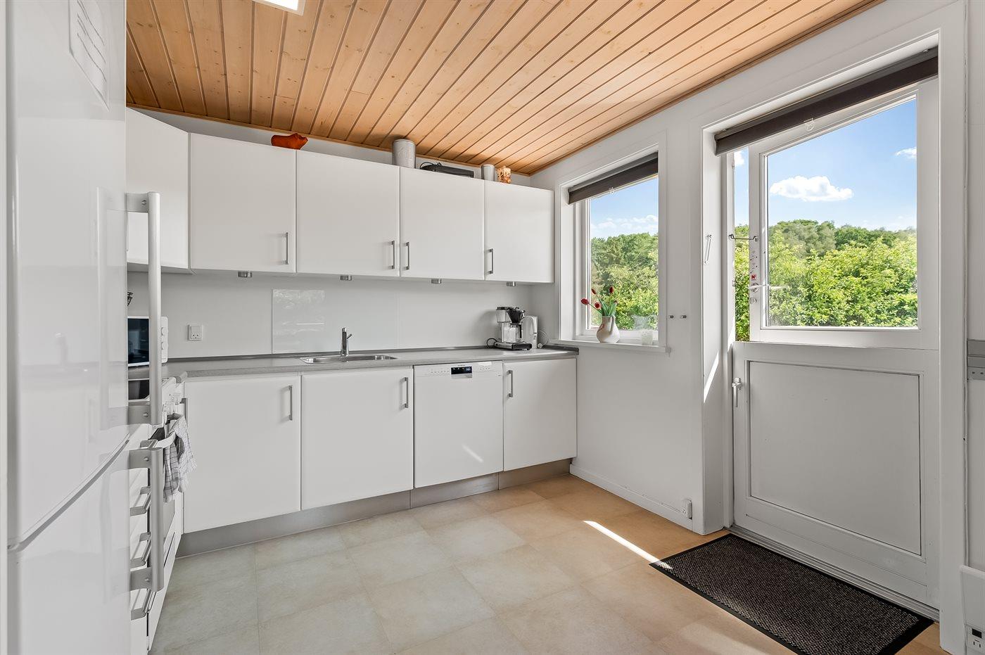 Køkkenet er udstyret med 1 køleskab. Der er 4 keramiske kogeplader, miniovn, varmluftovn, mikrobølgeovn samt opvaskemaskine.