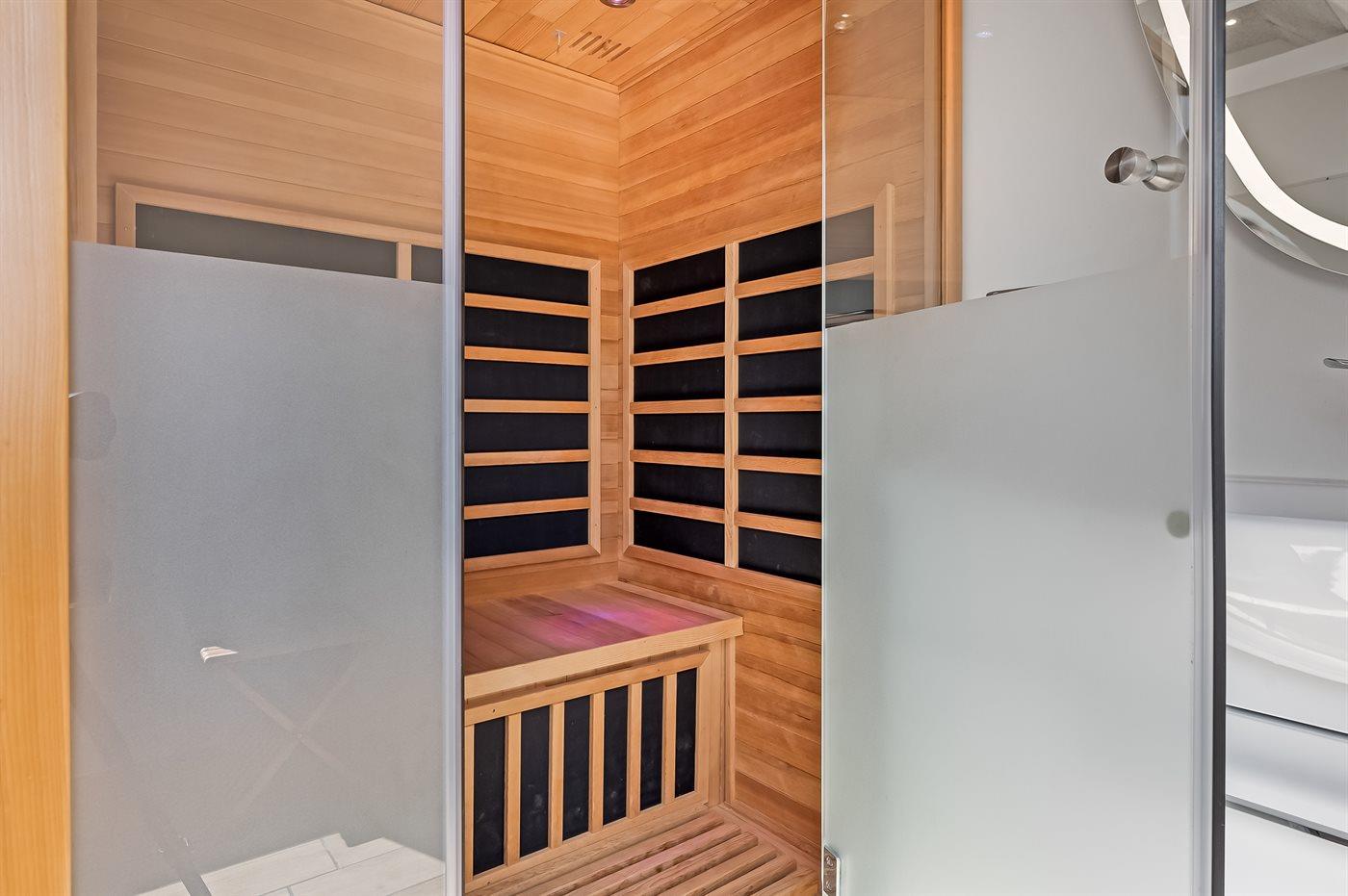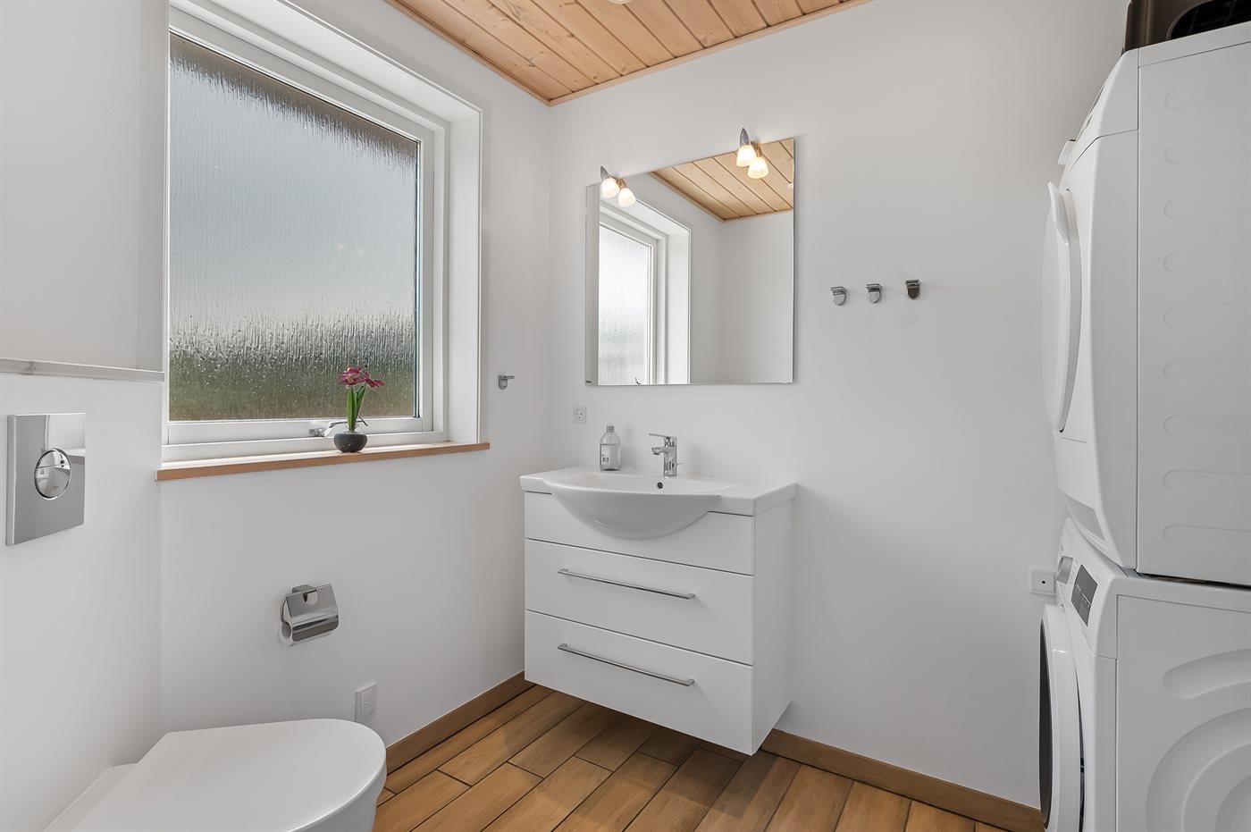 Der er 2 badeværelser med bruseniche og 2 toiletter. Der er gulvvarme på 2 badeværelser. I saunaen er der mulighed for afslapning.