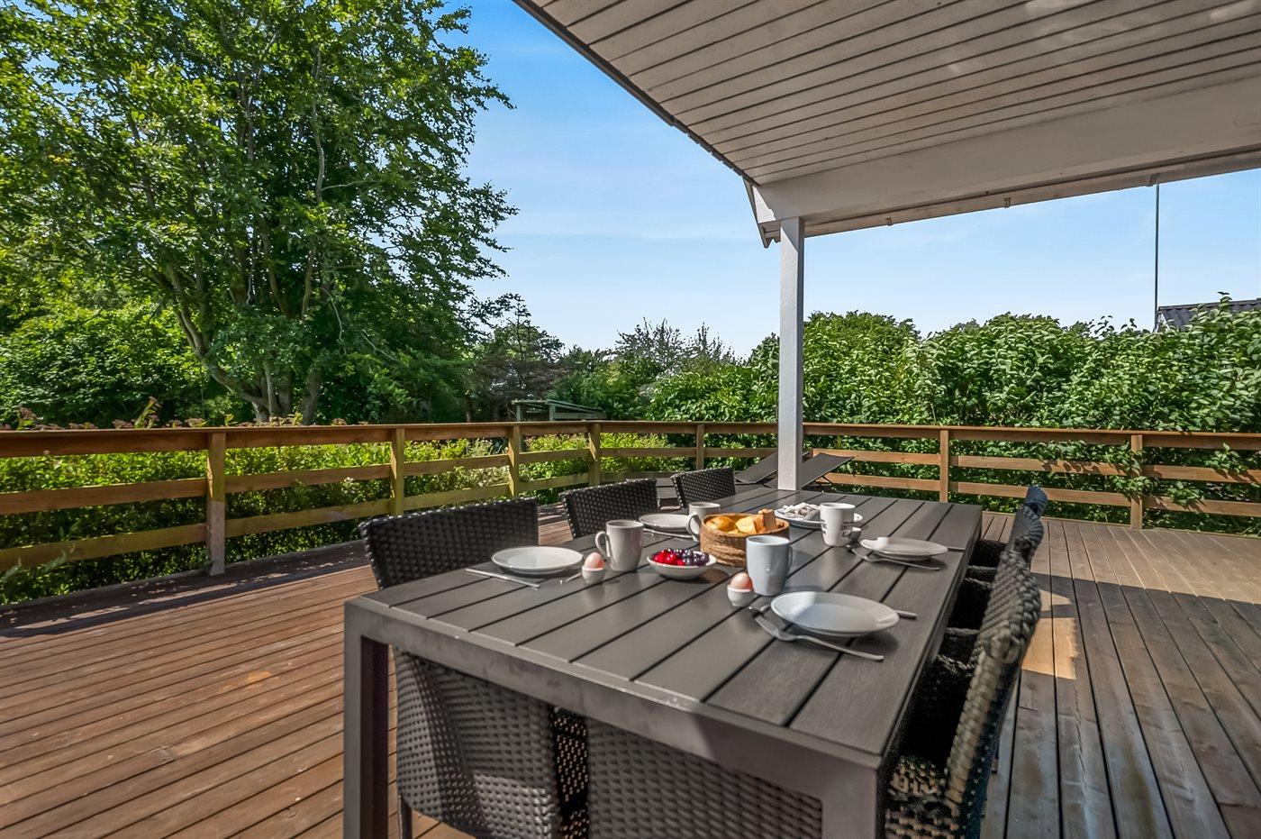 Ferieboligen er beliggende på en 1479 m² stor havegrund. Der er 150 m til havet. Nærmeste forretning er beliggende i en afstand af 2000 m. Til ferieboligen hører åbent terrasseareal. Desuden er der overdækket terrasse. Udgang til altan. Gynge. Sandkasse. Vippe. Fodboldmål. Grill til rådighed. Parkering ved ferieboligen.
