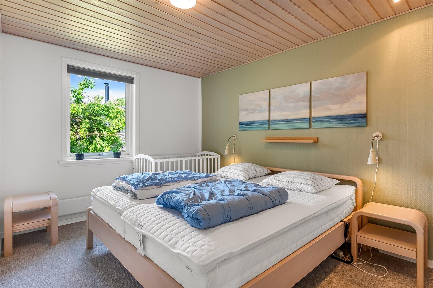 Der er i alt 4 soveværelser. Sovepladserne fordeler sig på: 6 sovepladser i dobbeltsenge. 4 sovepladser i køjesenge. Derudover er der 1 stk. barneseng.