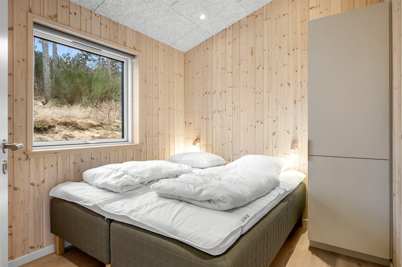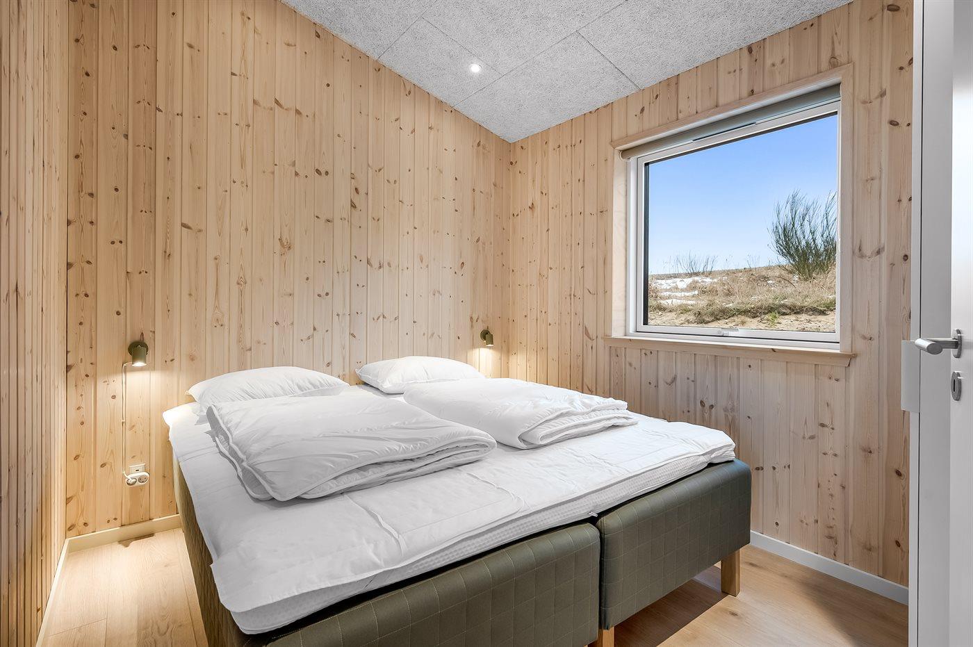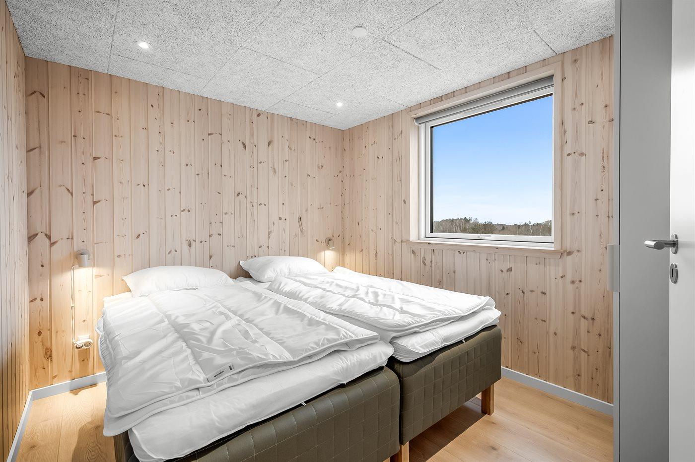 Der er i alt 6 soveværelser. Sovepladserne fordeler sig på: 8 sovepladser i dobbeltsenge. 4 sovepladser i enkeltsenge.