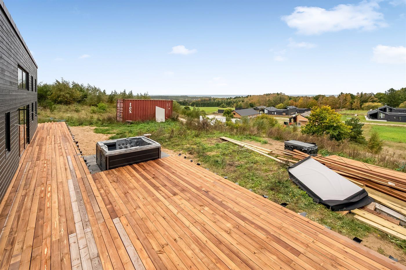 Udsigten er ganske fantastisk flere steder fra huset og ikke mindst fra den fantastiske terrasse, som er delvist overdækket. På terrassen findes et stort og lækkert spabad med plads til 6 personer hvor det er helt oplagt at sidde og nyde det varme vand og omgivelserne.