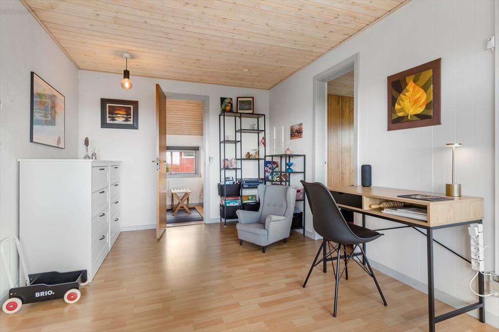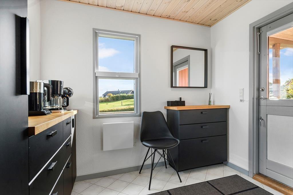 Stuen og alrummet smelter sammen med køkkenet, så I hele tiden er tæt på hinanden – og fra alle tre rum kan I følge med i havets skiftende stemninger. Entréen byder på en hyggelig kaffebar og god plads til at lande, når I kommer hjem fra strandture eller små udflugter.