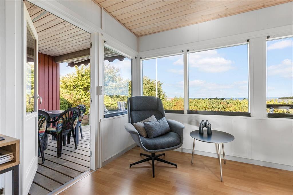 På terrassen står også lækre loungemøbler, hvor I kan synke ned med en bog, en kop kaffe eller bare lade blikket glide ud over Kattegats bølger. De puttede børn kan nemt høres fra terrassen, så I kan følge med i leg og liv, mens I nyder solen. På den anden side af huset gemmer sig en hyggelig solgård med nyt læhegn – et fredfyldt hjørne, hvor solen kan nydes i fulde drag.