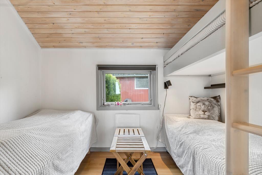 Når dagen går på hæld, finder I ro i de to soveværelser: et med en komfortabel king size dobbeltseng til de voksne og et andet med to enkeltsenge og en køje, hvor børnene kan dele dagens små eventyr, inden søvnen tager over.
