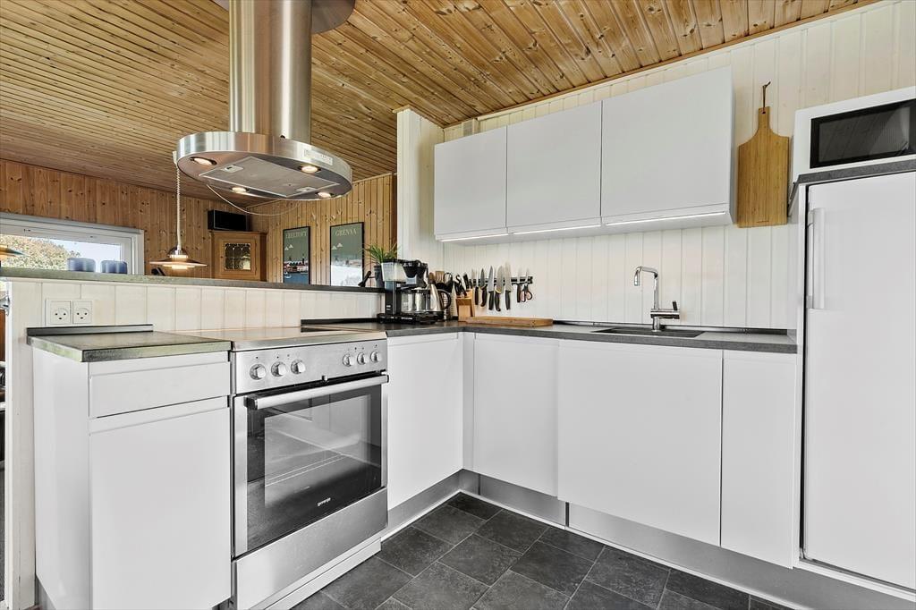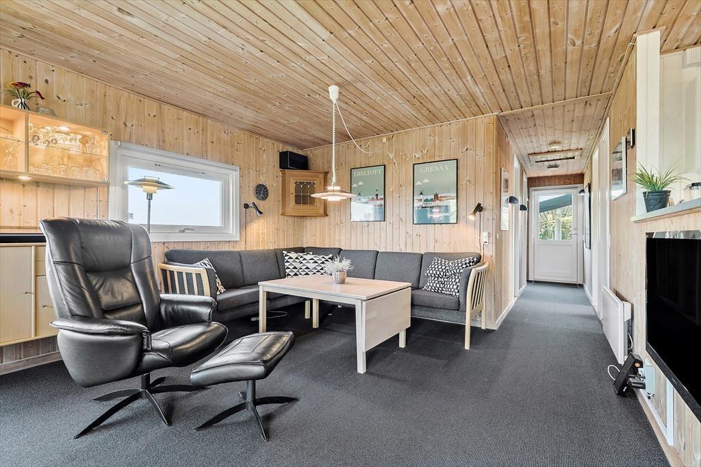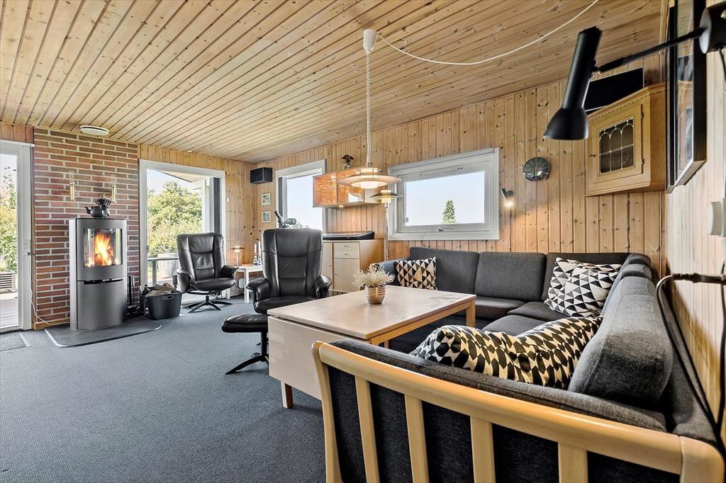 Velkommen indenfor Forestil dig en sommermorgen, hvor solen allerede har gjort himlen gylden, og du står ved vinduet i et charmerende træhus, istandsat i 2015. Du kigger ud over horisonten, hvor havet glimter blidt i det fjerne, kun 700 meter væk fra din ferieoase. Du kan næsten fornemme havluften, der blander sig med duften af ny brygget kaffe fra køkkenet, som ligger i åben forbindelse med den hyggelige spiseplads og stue.