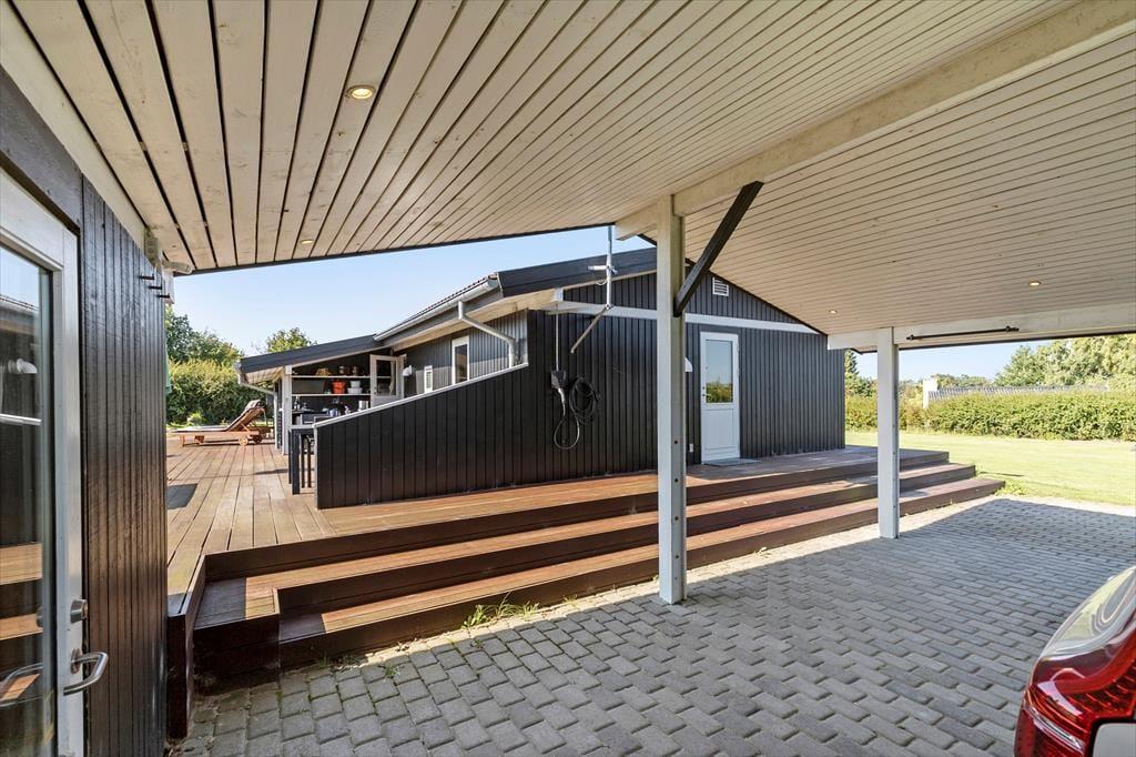 Nyd livet udenfor Når du ankommer til den stor og højtliggende grund, mærker du straks roen sænke sig. Du parkerer bilen i den integrerede carport, som ikke bare beskytter mod sol og regn, men også har mulighed for at oplade din elbil. En lille detalje, der gør ankomsten ekstra bekvem - også når du kommer hjem med poserne fyldt med dejlige, lokale indkøb.