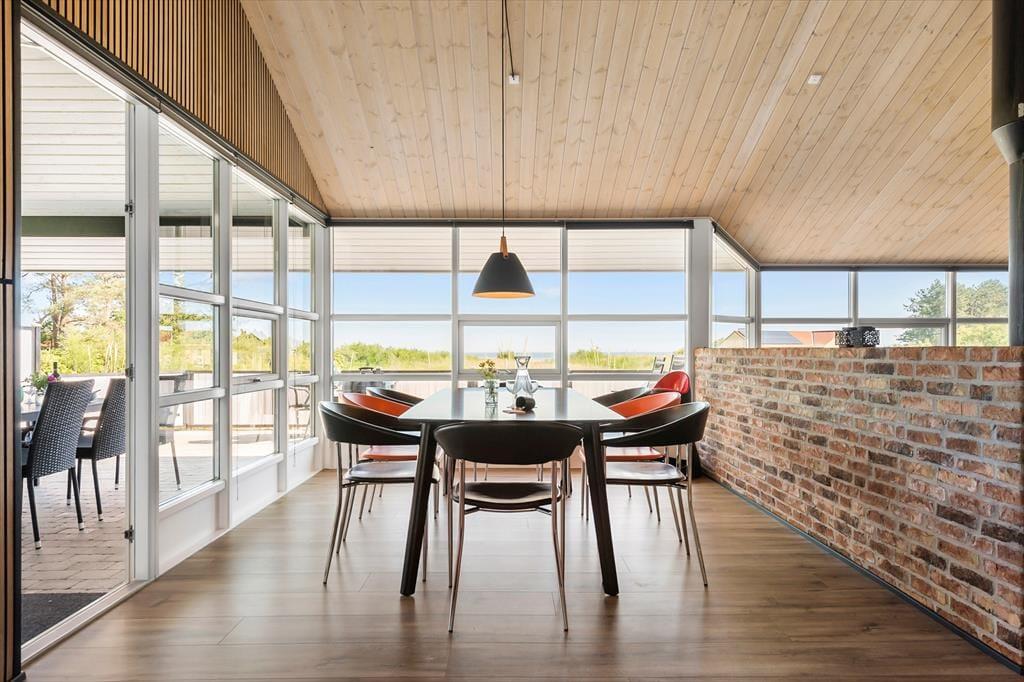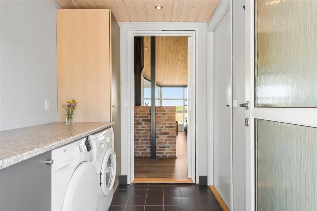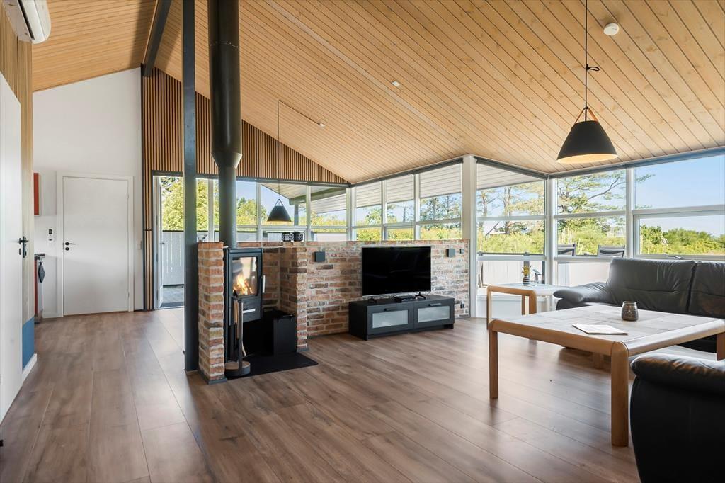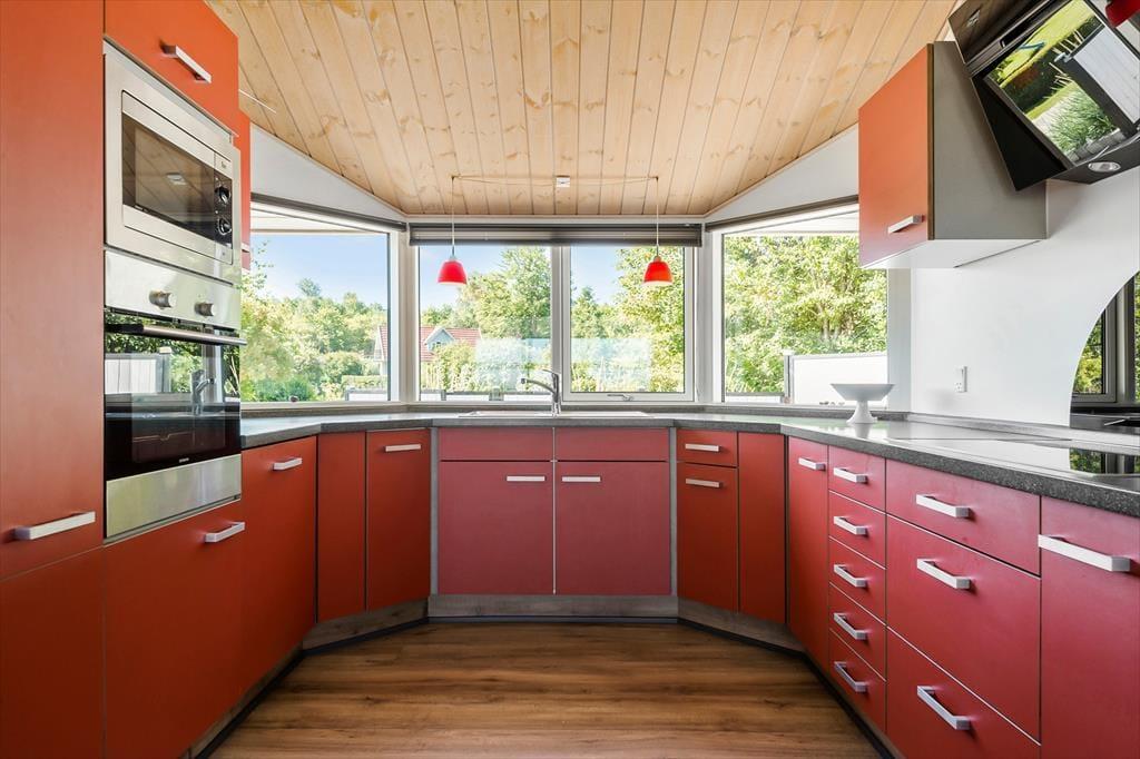 Velkommen indenfor: Velkommen til et herligt sommerhus, kun 180 meter fra den smukke og børnevenlige badestrand. Dette træsommerhus, som blev istandsat i 2020, tilbyder en fantastisk udsigt til havet fra de fleste af husets rum samt fra en af de 2 dejlige terrasser. Sommerhuset er indrettet i en unik newyorkerstil med modigt farvevalg, herunder et flot, rødt køkken. Den åbne og luftige planløsning skaber en rummelig og behagelig atmosfære. Badeværelset er udstyret med spa, perfekt til afslapning efter en dag på stranden. Huset rummer tre soveværelser - et med en dobbeltseng og to med to enkeltsenge i hvert værelse. Der er også madrasser på hemsen. Bryggerset indeholder både vaskemaskine og tørretumbler, hvilket gør det nemt at holde styr på vasketøjet under ferien. Dette sommerhus er ideelt til en familie eller en gruppe venner, der ønsker at nyde en afslappende ferie tæt på stranden med moderne bekvemmeligheder og en smuk havudsigt.