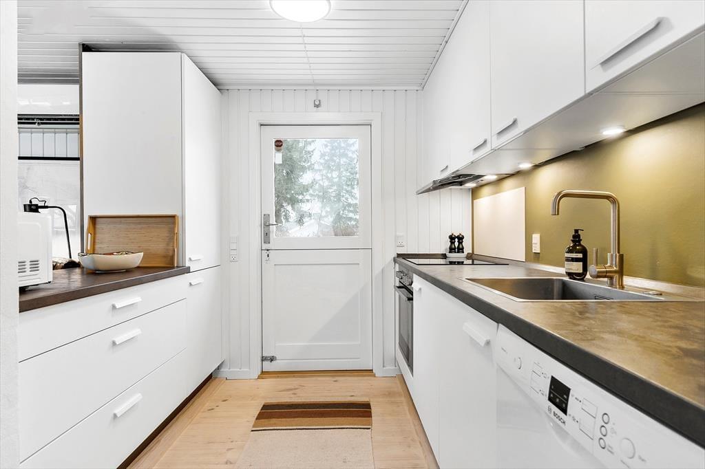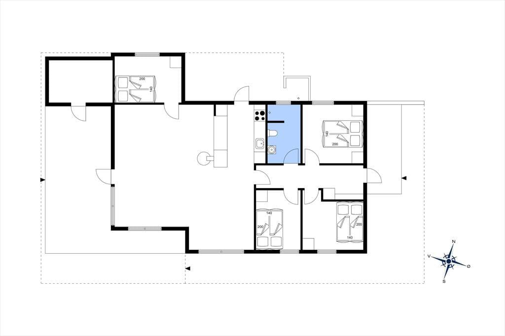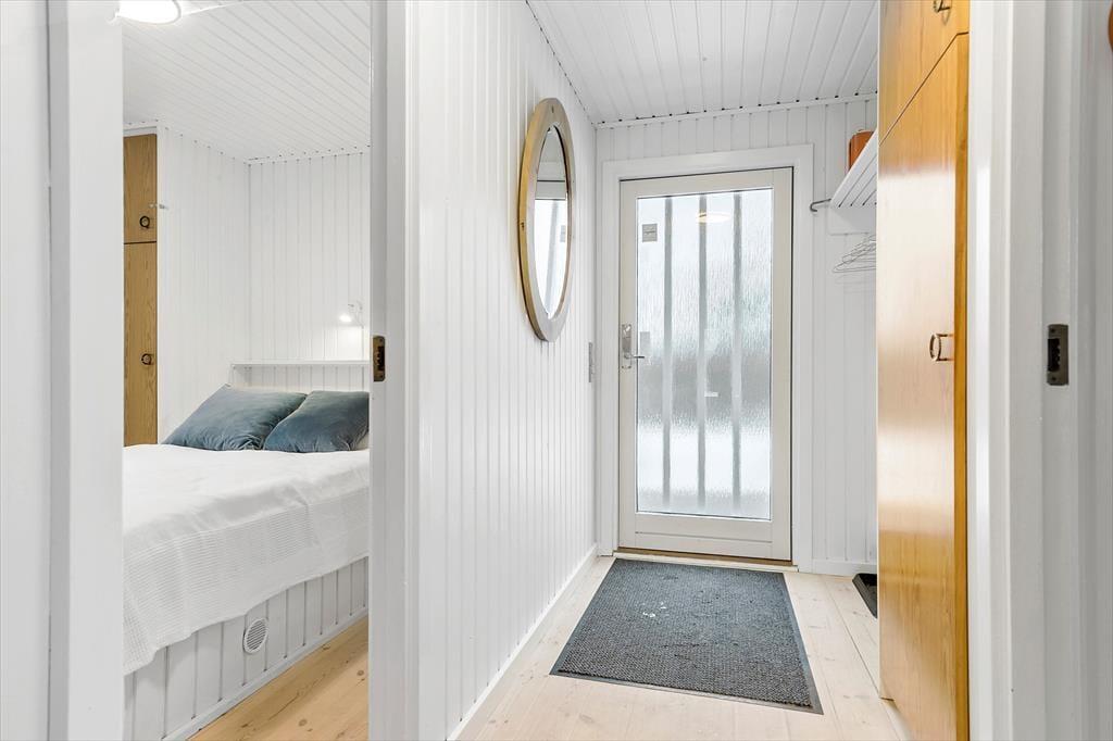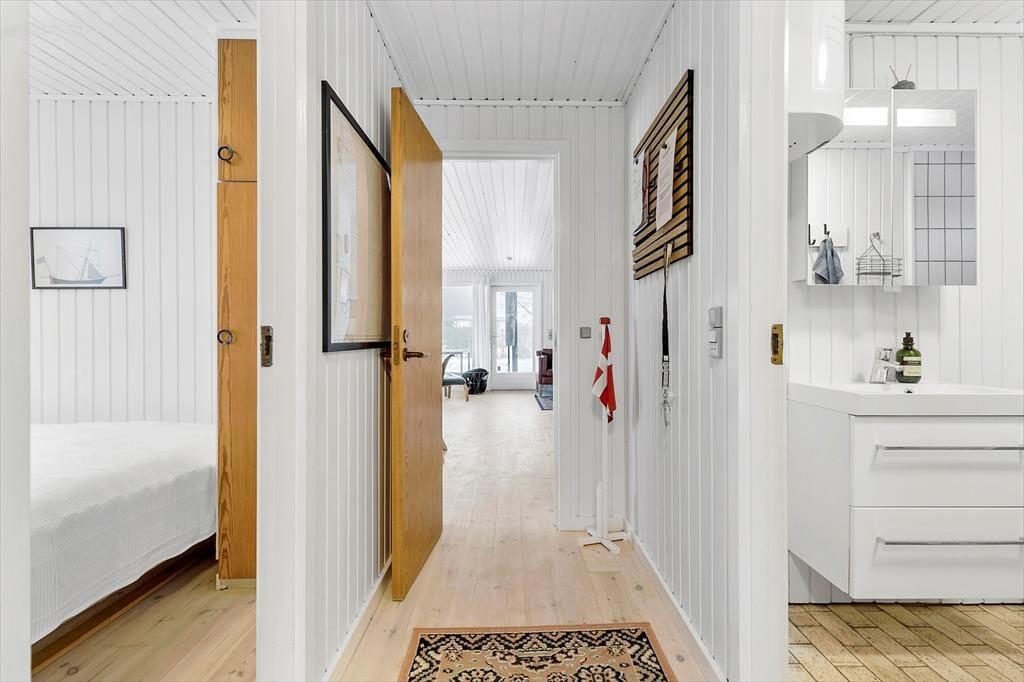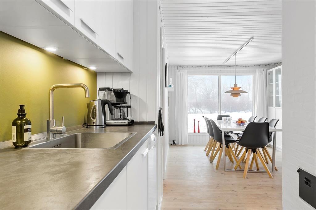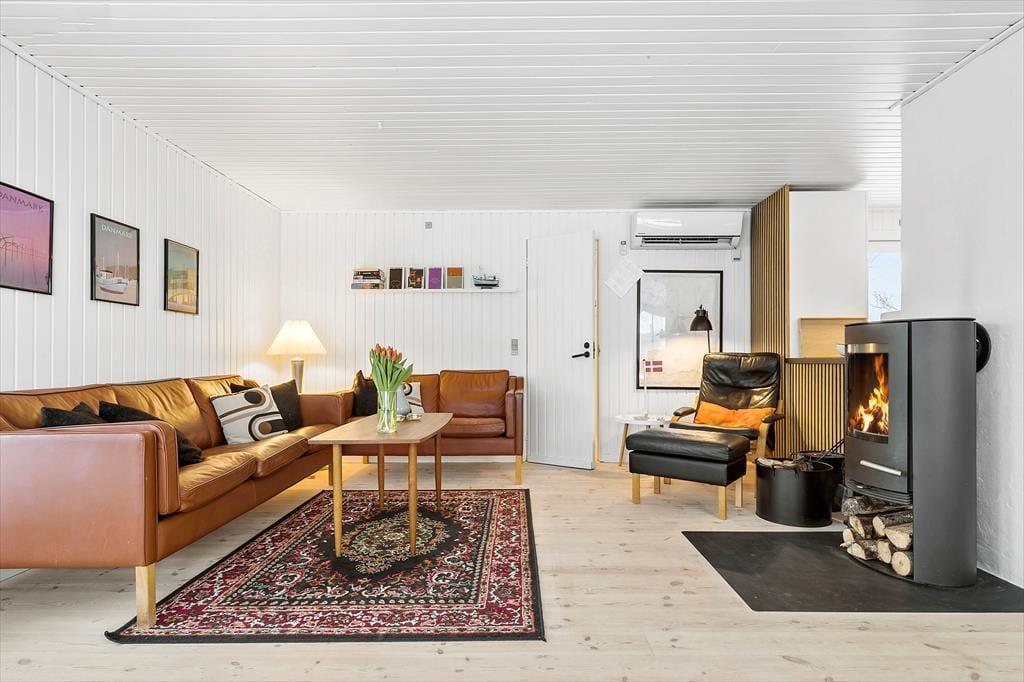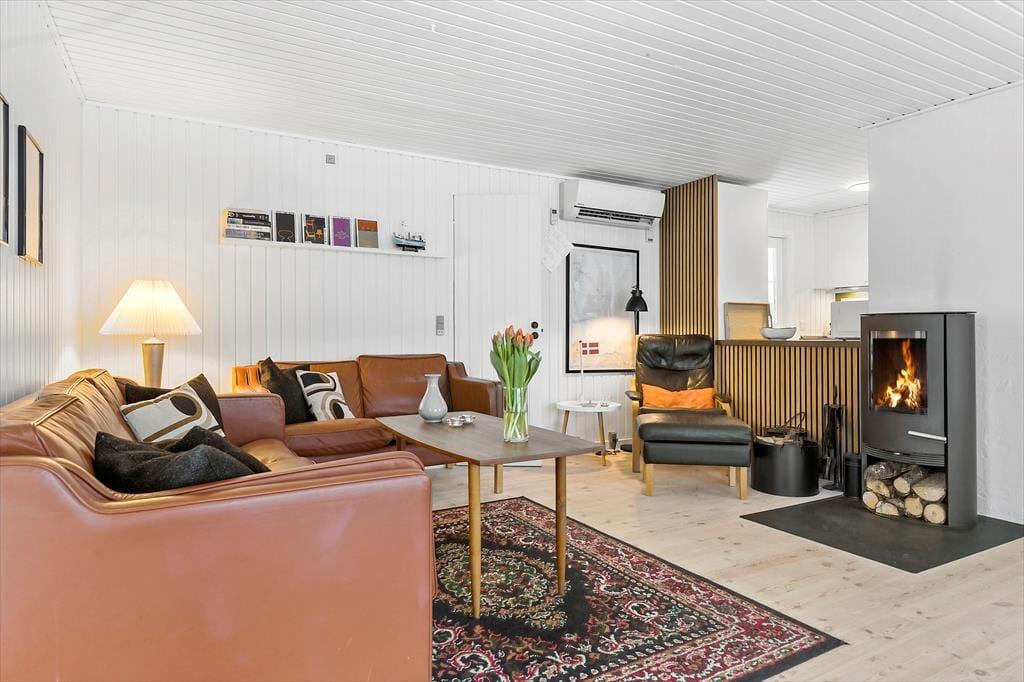 I sommerhusets varme og indbydende rammer finder du et fristed for ro og samvær. Forestil dig, hvordan du efter en dag fyldt med eventyr kommer hjem til et hus, hvor du straks føler dig hjemme. De fire soveværelser er som små oaser, hver med en behagelig dobbeltseng, der indbyder til en god nattesøvn. Når du vågner op, er der plads til at nyde morgenkaffen i det lyse køkkenalrum, hvor du nemt samler familien til fælles måltider. Køkkenet er perfekt udstyret, så du kan slippe din indre kok løs og tilberede lækre måltider. Den rummelige stue med brændeovn er det ideelle sted at samles på en kølig aften. Måske spiller I et brætspil, måske læser du en god bog, eller måske ser I en film, mens flammerne i brændeovnen knitrer. Fra stuen kan du træde direkte ud på terrassen, hvor du kan tage et hvil, eller måske endda hoppe i saunaen, som ligger lige ved siden af. Fra terrasser er der adgang til den smukke have med både shelter og bålplads – den perfekte ramme for hyggelige stunder under stjernerne.
