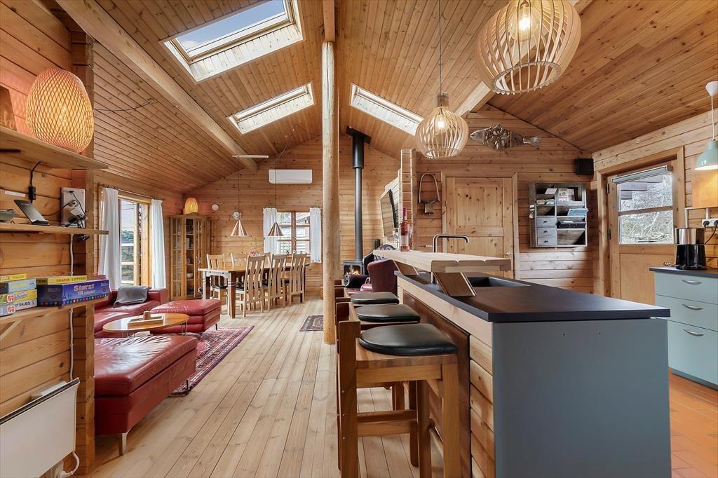 Velkommen indenfor: Rustik bjælkehus og selvstændig hytte med eget badeværelse, stue og køkken. Beliggende midt i Bønnerup by, kun en kort afstand fra havnen, en lækker fiskeforretning med alskens friske fisk, butikker og restauranter. I "hovedhuset" er der tre dejlige soveværelser, et lækkert køkken, en hyggelig hems og en stue med brændeovn og spiseplads. Separat fra hus og hytte er der aktivitetsrum, hvor du kan male og lade kreativiteten blomstre. Her er også et lille bordfodboldspil, dart og et spillehjørne.