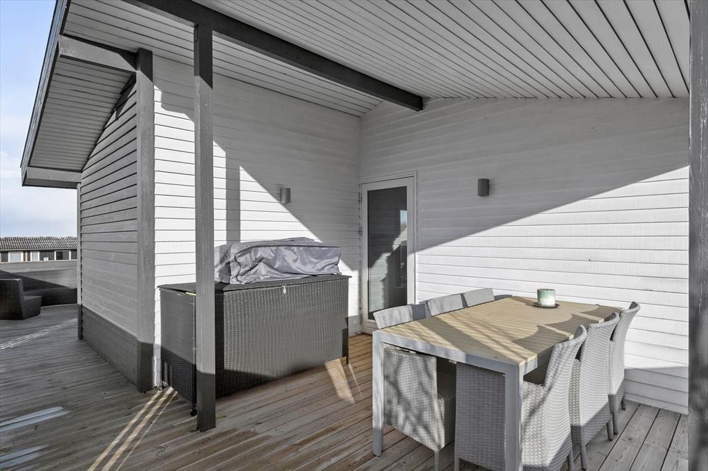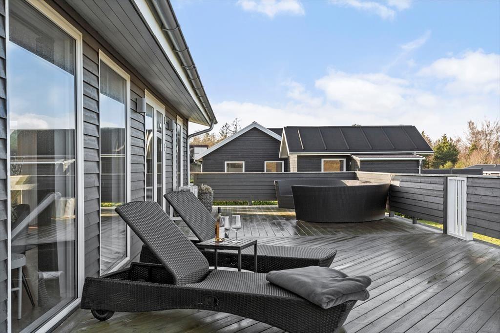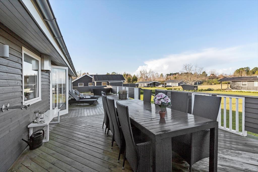 Terrassen er hjertet af udendørslivet – delvist overdækket og indhegnet, så I både kan nyde solen og finde skygge, når varmen bliver intens. Her står havemøblerne klar til lange middage, loungemøblerne til afslappende stunder med en god bog, og liggestolene til solbadning. Tænd op i grillen og lav feriens måltider, mens børnene leger på græsplænen, der er perfekt til boldspil og sjove aktiviteter.
