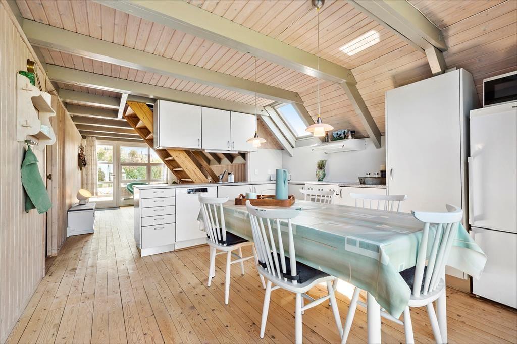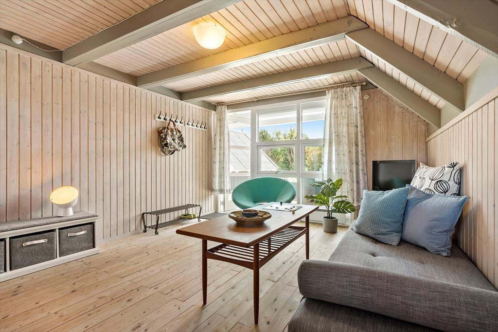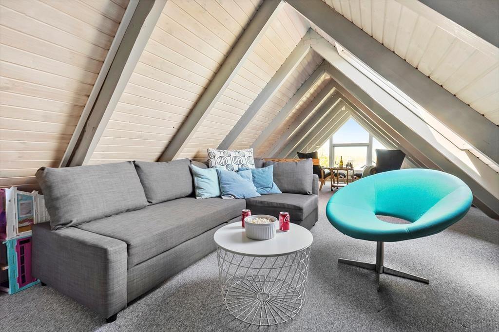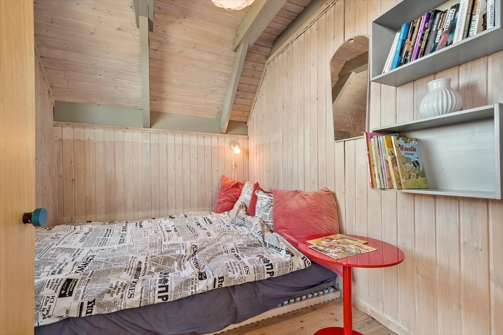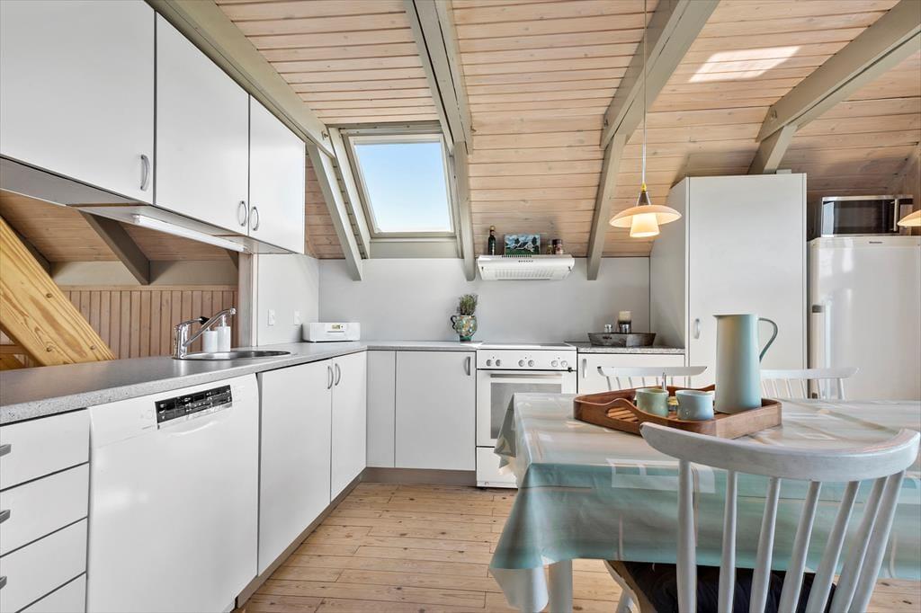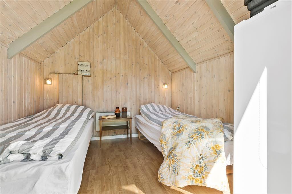 Velkommen indenfor: Træd ind i denne hyggelige familie oase, hvor hvert hjørne af det velholdte hus danner gode rammer for værdifuldt familiesamvær. Et sandt tilflugtssted, hvor roen hurtigt falder på, når I omfavnes af den dejlige atmosfære, der vækker minder om barndommens sommerhusferier. Gør dig klar til dagen med et frisk brusebad i det pæne badeværelse, inden du snupper den færdigbyggede kaffe fra køkkenet med på morgenterrassen. Her er parasollen slået op og børnene er allerede i fuld gang ned at lege i sandkassen, mens de glæder sig til strandturen i eftermiddag. Et glad, lyst og hyggeligt køkken med spisebordet tæt på og udgang til dejlig aftenterrasse samt 2 soveværelser. I stuen ovenpå danser solens stråler gennem vinduerne og I nyder udsigten og solnedgangen over havet i ”voksenhjørnet” efter, at de trætte feriebørn er puttet i det ene værelse lige neden under. De sover trygt i dobbeltsengen uden ben, så der ikke sker det store, hvis de skulle trille ud. I den anden ende af stuen ovenpå er der behagelig tv-afdeling med sovesofa. Herudover hyggeligt anneks med 2 gode enkeltsenge.