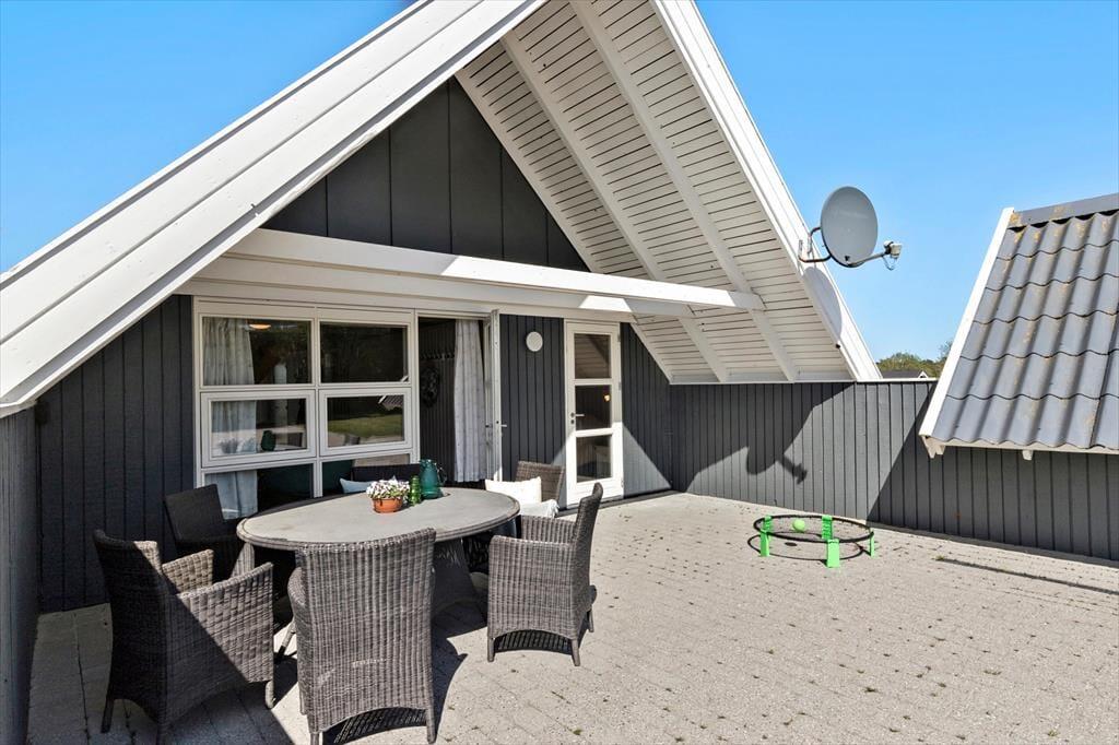 Nyd livet udenfor: En dejlig have med græsplæne, omkranset af en tæt hæk giver fine muligheder for at lege spark til dåsen, spille bold eller slå vejrmøller. De små gæster kan lege i sandkassen alt imens du slikker sol på den flisebelagte terrasse. Når dagen går på hæld og grillen er gået ud, kan I tænde op i bål stedet og samles på terrassen for at se solen synke ned over horisonten.