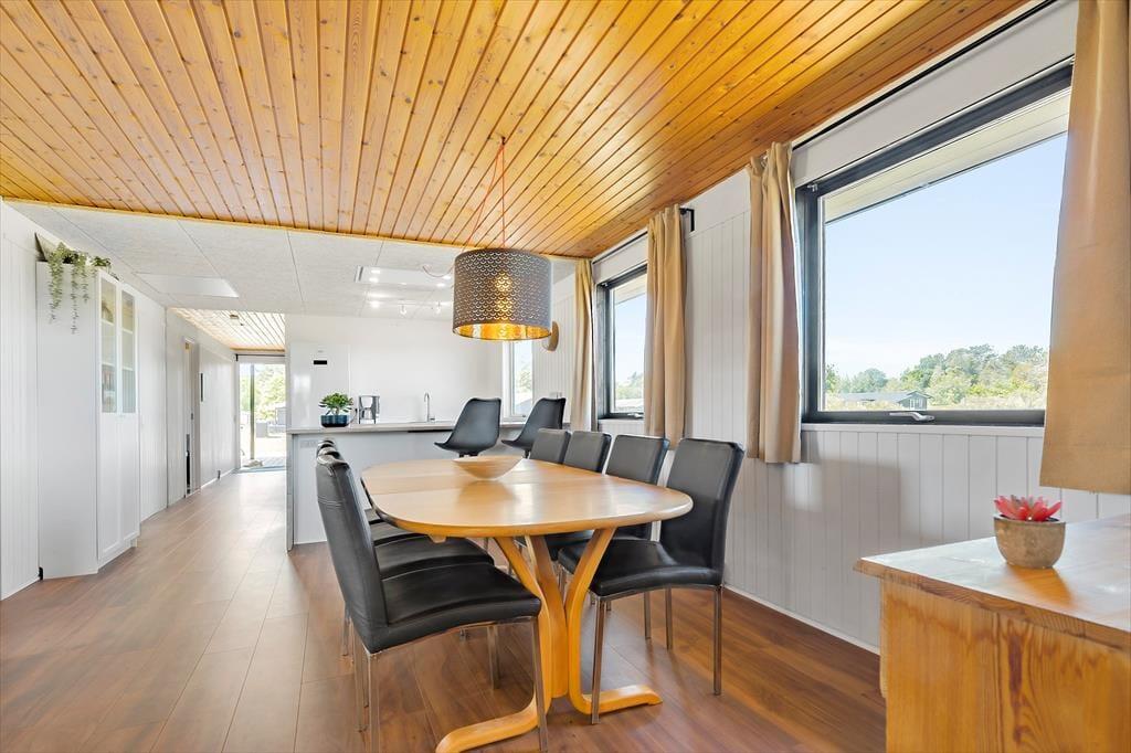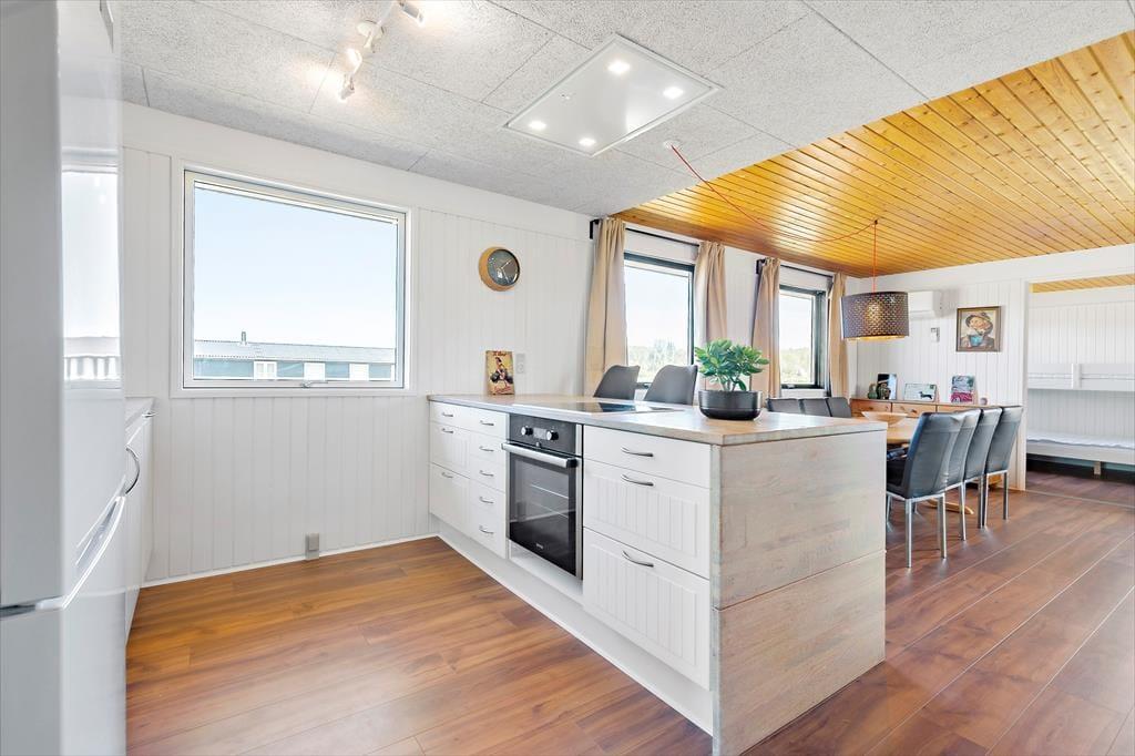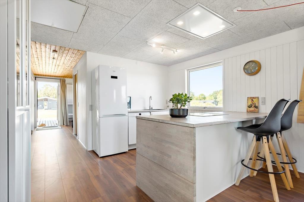 Træd ind i et hus, der har alt, hvad den store familie behøver for at skabe uforglemmelige ferieminder. I dette rummelige sommerhus finder du et nyt og moderne køkken, hvor du kan slippe kreativiteten løs og lave lækker feriemad til familien. Køkkenøen fungerer som både arbejdsplads og “snakkebar,” hvor du kan nyde en drink og hyggesnakke med de andre, mens du laver lækker feriemad. Det åbne køkken flyder naturligt sammen med spiseområdet og den hyggelige stue, hvor komfortable møbler og et tv indbyder til afslapning efter en dag med oplevelser. Når det er tid til at sove, tilbyder huset 3 soveværelser: ét med en dejlig dobbeltseng og to med køjesenge, hvor der er dobbeltsenge nederst og enkeltsenge øverst – perfekt til børnene. I hjørnet af entreen finder du en dobbeltsovesofa og endnu et tv – et hyggeligt hjørne til at se film eller spille spil på de rolige aftener. Sidst, men ikke mindst, er der et lækkert, nyt badeværelse med stor brusekabine, vaskemaskine og tørretumbler – alle de praktiske detaljer, der gør ferien ekstra bekvem.