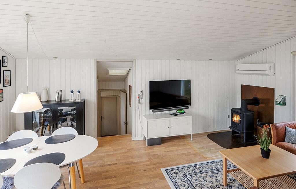 Træhuset ligger på en smuk naturgrund og er moderne og komfortabelt indrettet i skandinavisk stil. I den smukke stue inviterer den store sofa og pejsen jer til at tilbringe hyggelige aftener med familien. Til underholdning er der en Chromecast, WiFi og tv. Et par skridt fører jer til det åbne og veludstyrede køkken. Der er også to soveværelser i huset, yderligere to senge er i annekset.
