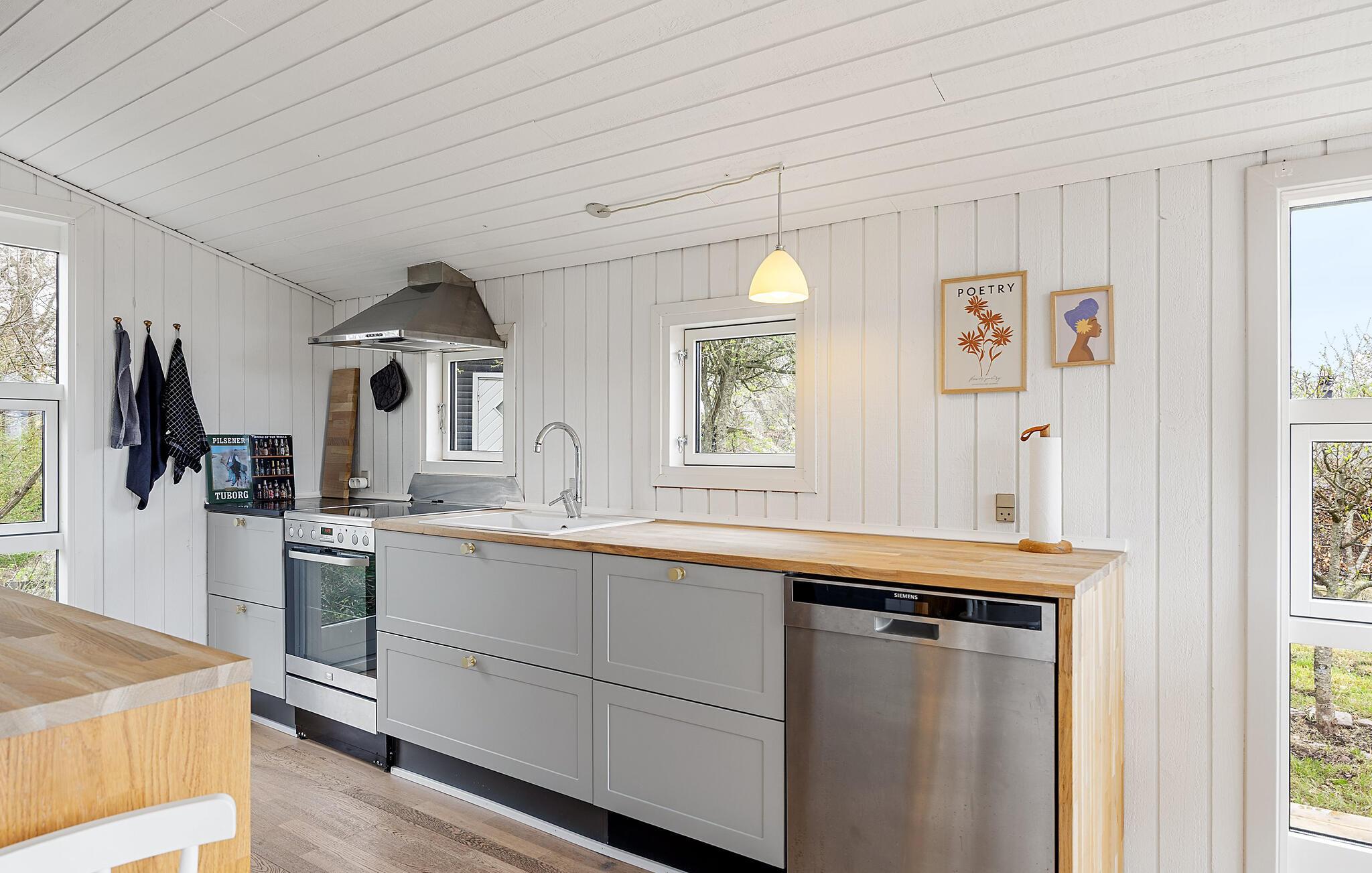 Hyggeligt træhus i Glesborg med moderne skandinavisk stil og nærhed til strand og natur.