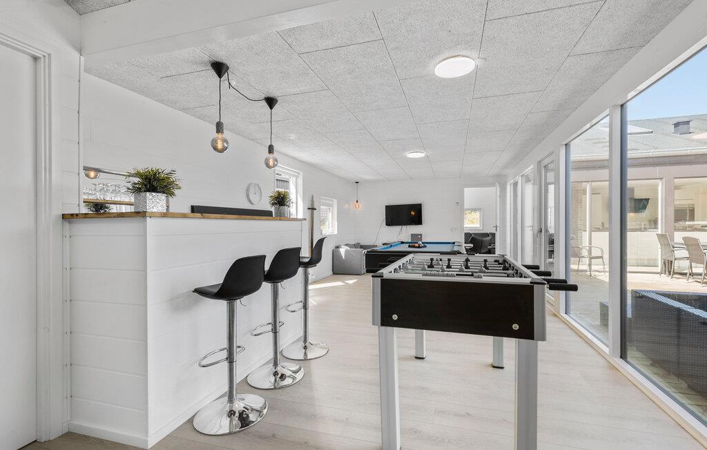 Dette yderst komfortable sommerhus på Bønnerup Strand lægger op til en ferie medren afslapning og en lang række fritidsaktiviteter. Huset er ideelt til flere familier eller en større gruppe, for der er masser af plads og kun få minutter til den maleriske kyst. Begynd dagene med en lækker morgenmad i det rummelige køkken og find sammen ud af, hvad dagen skal bruges på. I kan se frem til mange sjove stunder i indendørspoolen til masser af vandsjov samt afslapning i spabadet og saunaen. Der er også et spabad udenfor. Billard- og bordtennisbordene inviterer til en hyggelig hjemmedyst. Feriens yngste deltagere kan hoppe en tur på trampolinen, gynge og spille fodbold eller hygge sig med andre boldspil.