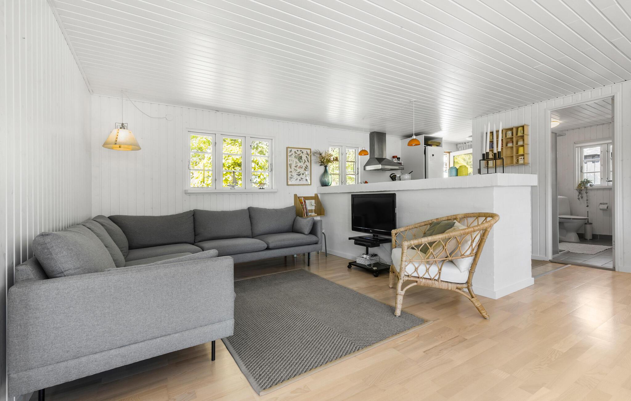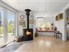 Nyd en afslappende pause fra jeres hverdag med dejlig familietid i dette feriehus i grønne omgivelser. Så snart I træder ind, vil I føle jer hjemme. Den åbne planløsning sikrer ekstra samvær og nærvær, ligesom lyse farver, små detaljer og hyggekroge sørger for en behagelig stemning. Sæt jer med en god bog i gyngestolen eller på skibsbriksen, mens ilden knitrer i brændeovnen. Om aftenen kan I læne jer tilbage i sofaen til en god serie. Huset ligger på en skråning, så jeres børn kan løbe fra terrassen og ned på græsplænen, hvor der står en trampolin klar til mange timers sjov. Nyd solen og blikket over haven fra terrassen og læg planer for de næste dages aktiviteter.