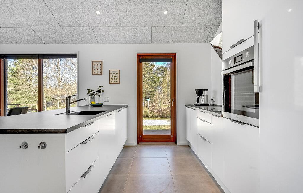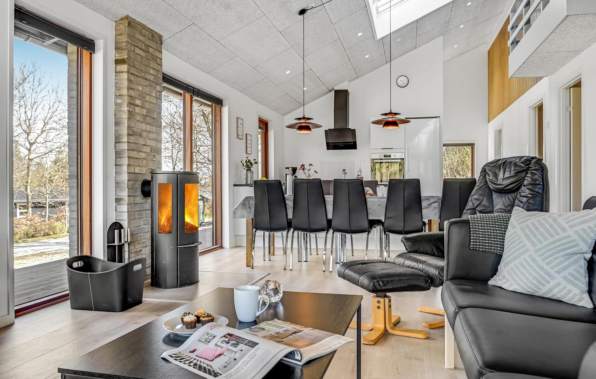 Velkommen til dette stilfulde feriehus med plads til en stor familie eller to mindre familier plus to hunde. Husets hjerte er den store, kombinerede spise- og opholdsstue med åbent køkken. Her kan I tilberede og nyde lækre feriemåltider og slappe dejligt af foran brændeovnen og fladskærms-TV'et.