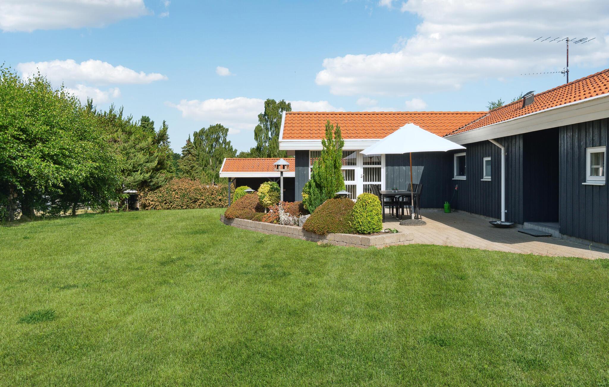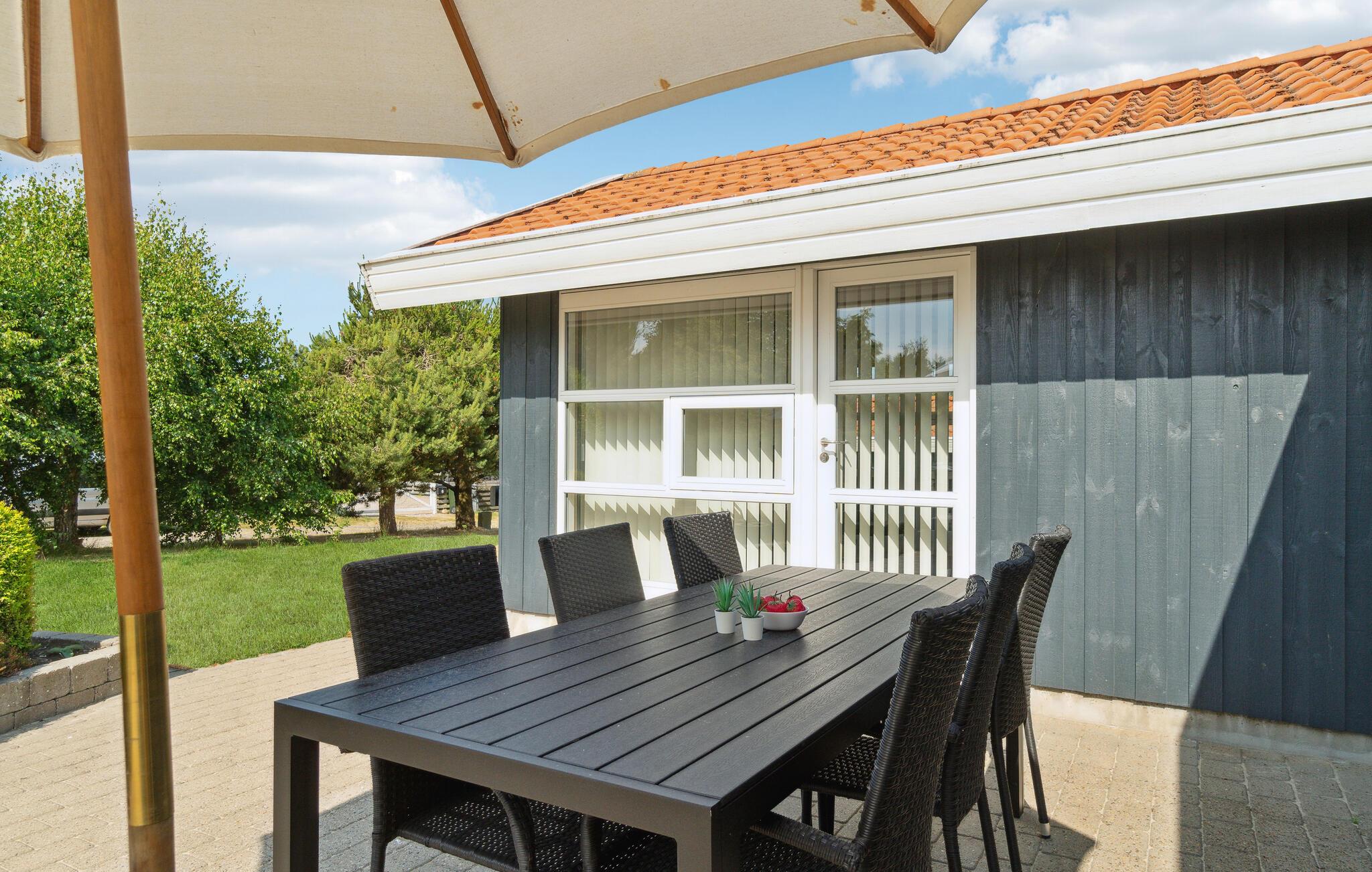Feriehusets udendørsområde indbyder til mange glade timer i det fri. Nyd solen på terrassen, mens jeres børn render rundt på ejendommen og slapper af i fulde drag.