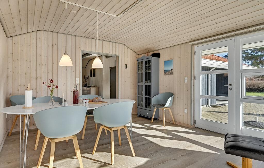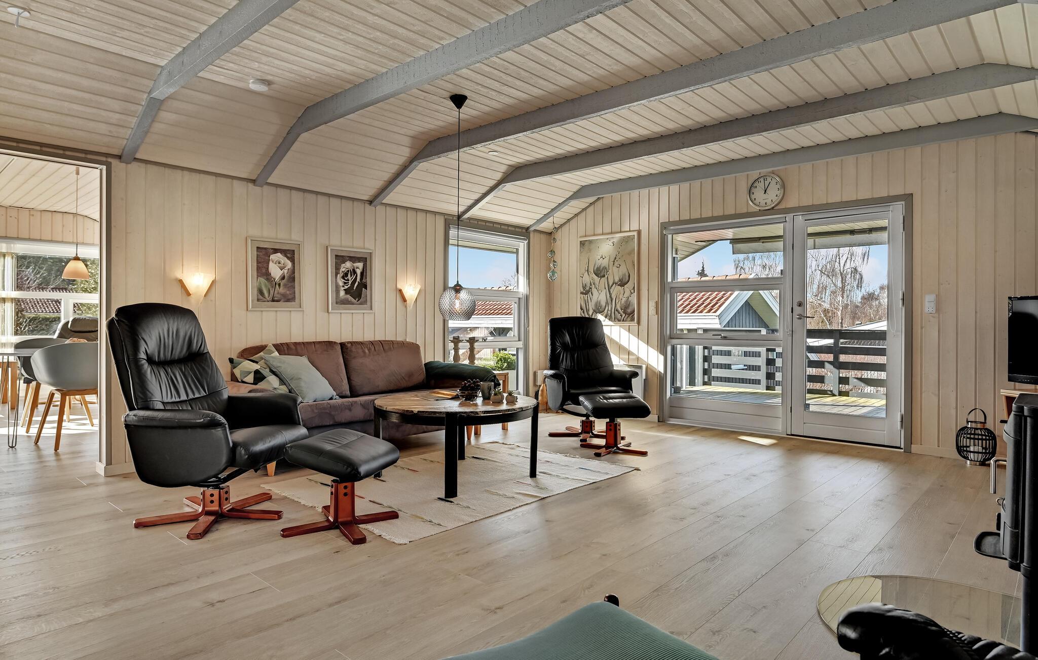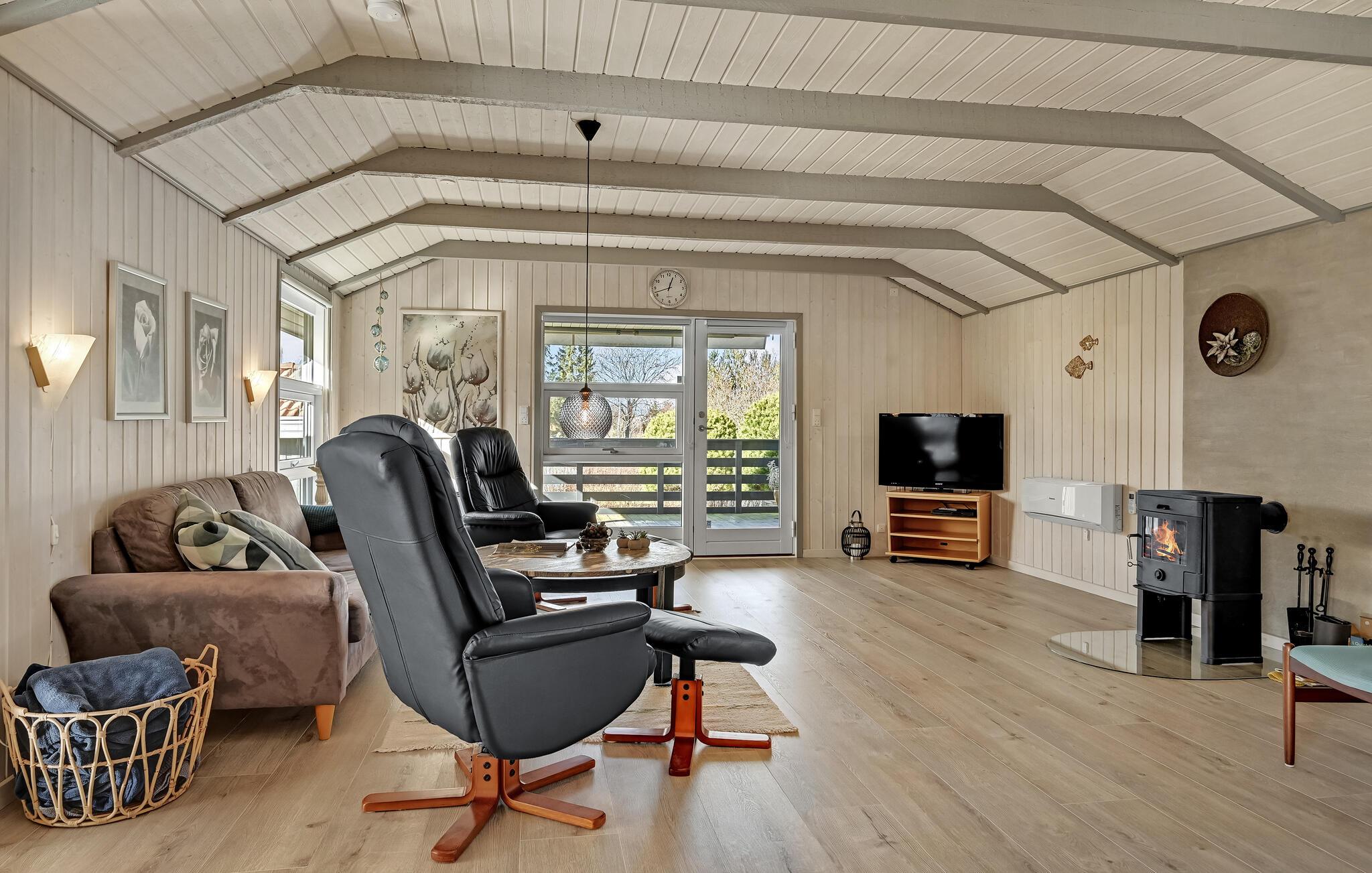Glæd jer til at slappe af med hele familien i de lyse værelser i det komfortable hus. Den hjemlige indretning sikrer en hyggelig atmosfære. Lav mad sammen med en vidunderlig udsigt til haven, nyd måltiderne ved spisebordet, hvor I også nyder en smuk udsigt til de grønne omgivelser. Senere kan I føle jer godt tilpas i sofaen, efter en vidunderlig dag på stranden eller på udflugter. Tænd op i brændeovnen om aftenen og arranger en selskabelig film- eller spilleaften.