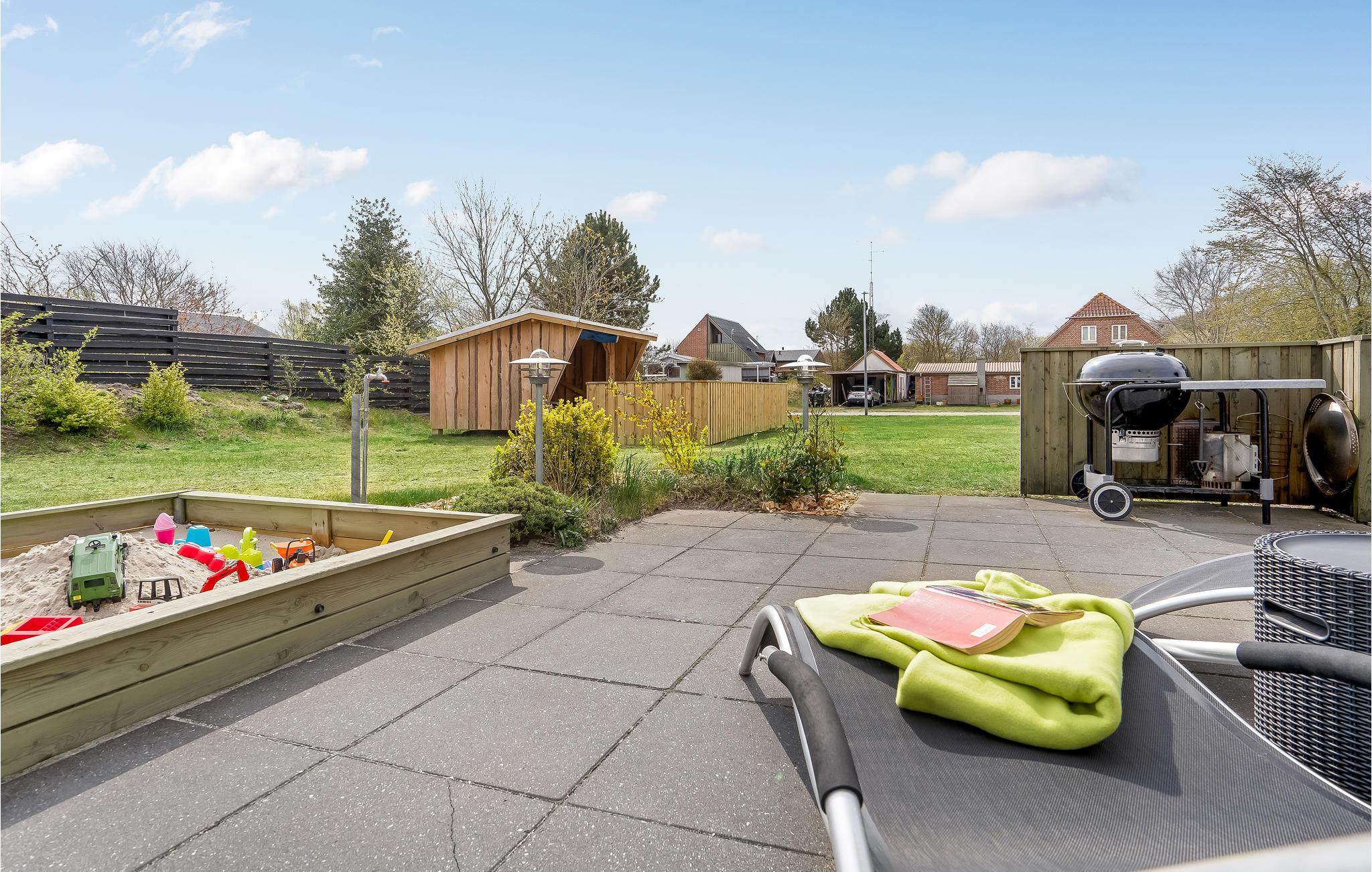 Hyggeligt feriehus med aktivitetsrum og shelter