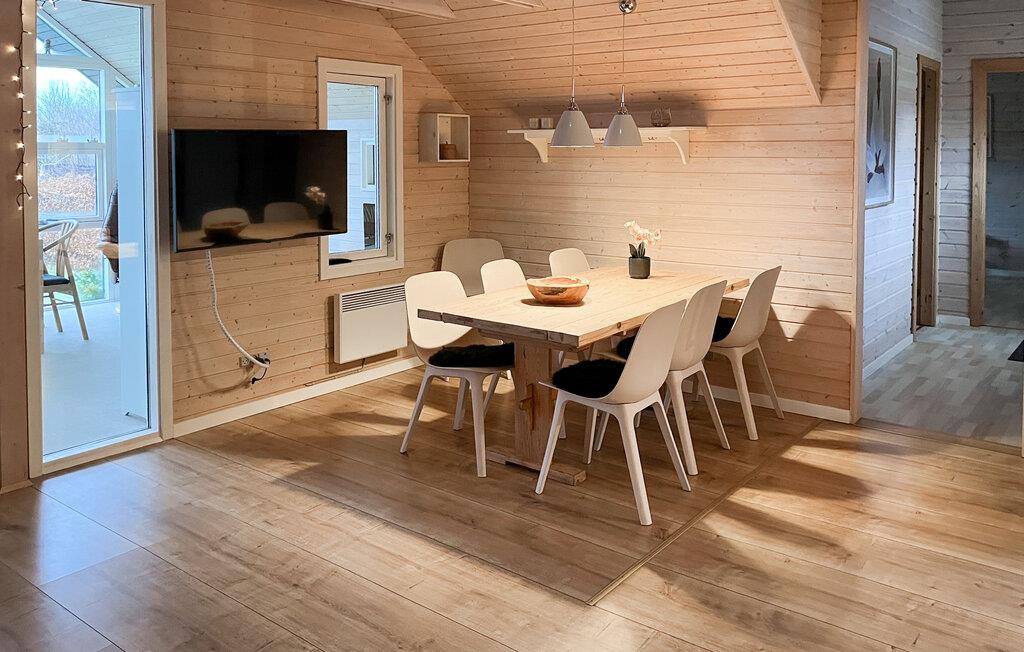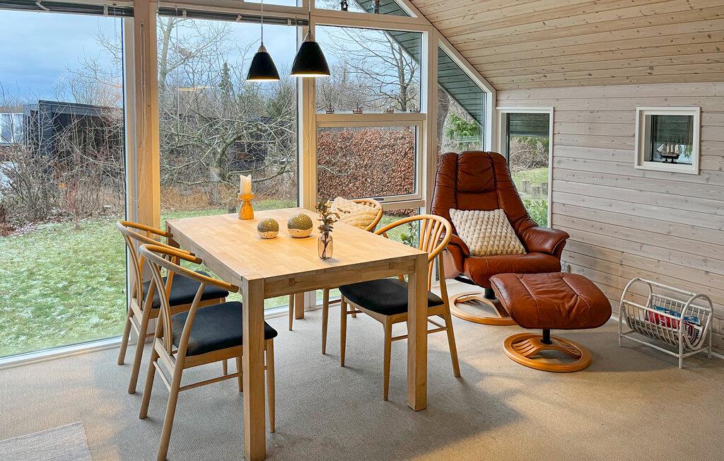 Kun en kort gåtur fra stranden byder dette rummelige feriehus jer velkommen med en venlig og hyggelig atmosfære. Glæd jer til hyggelige måltider og sjove spilleaftener omkring det behageligt oplyste spisebord, planlæg jeres aktiviteter sammen, og læn jer tilbage i lænestolen med en god bog om aftenen.