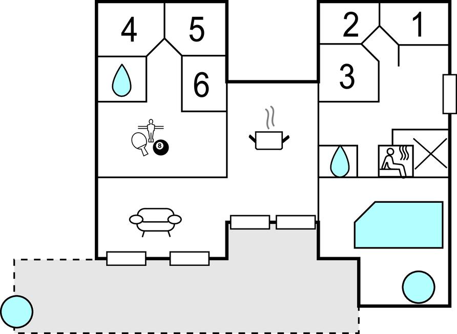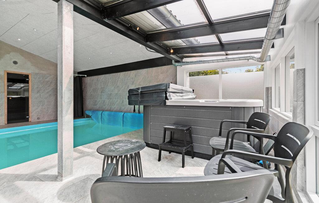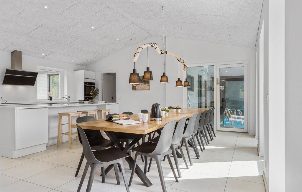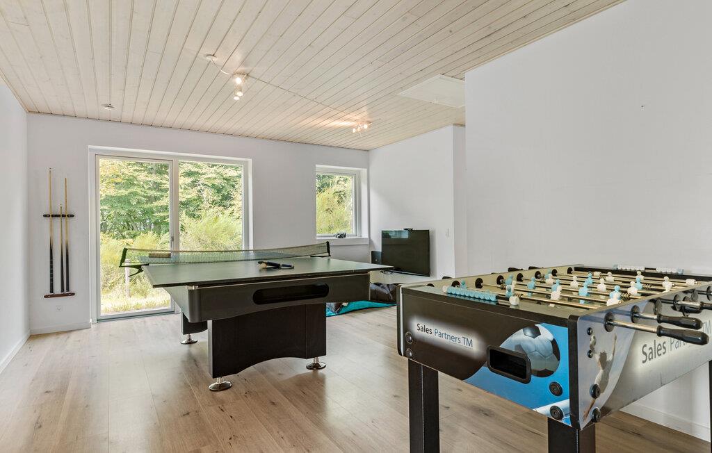 Hvis I er på udkig efter en rummelig bolig til en ferie med hele den udvidede familie - eller skal I måske endda fejre en af de store mærkedage - er dette lækre hus ved Bønnerup det helt rigtige valg for jer. Her får I, ude som inde, en lang række faciliteter, der er med til at sikre god komfort og masser af sjov på tværs af generationerne. Køkkenet er moderne og fuldt udstyret, så kokkene kan tage sig god tid med madlavningen til det helt store festmåltid ved det lange spisebord med plads til alle. Prikken over i'et er pool-afdelingen, hvor børnene uanset vejret kan plaske rundt i poolen, mens de voksne tager den lidt mere med ro i spabadet eller saunaen. Snup et slag pool eller bordfodbold i aktivitetsrummet, inden I runder af i med et godt glas vin i sofahjørnet efter en skøn dag. Trænger I til lidt ekstra forkælelse oven på dagens strabadser, er der både spabad indendørs og et skønt vildmarksbad, hvor de ømme muskler kan blødes op.