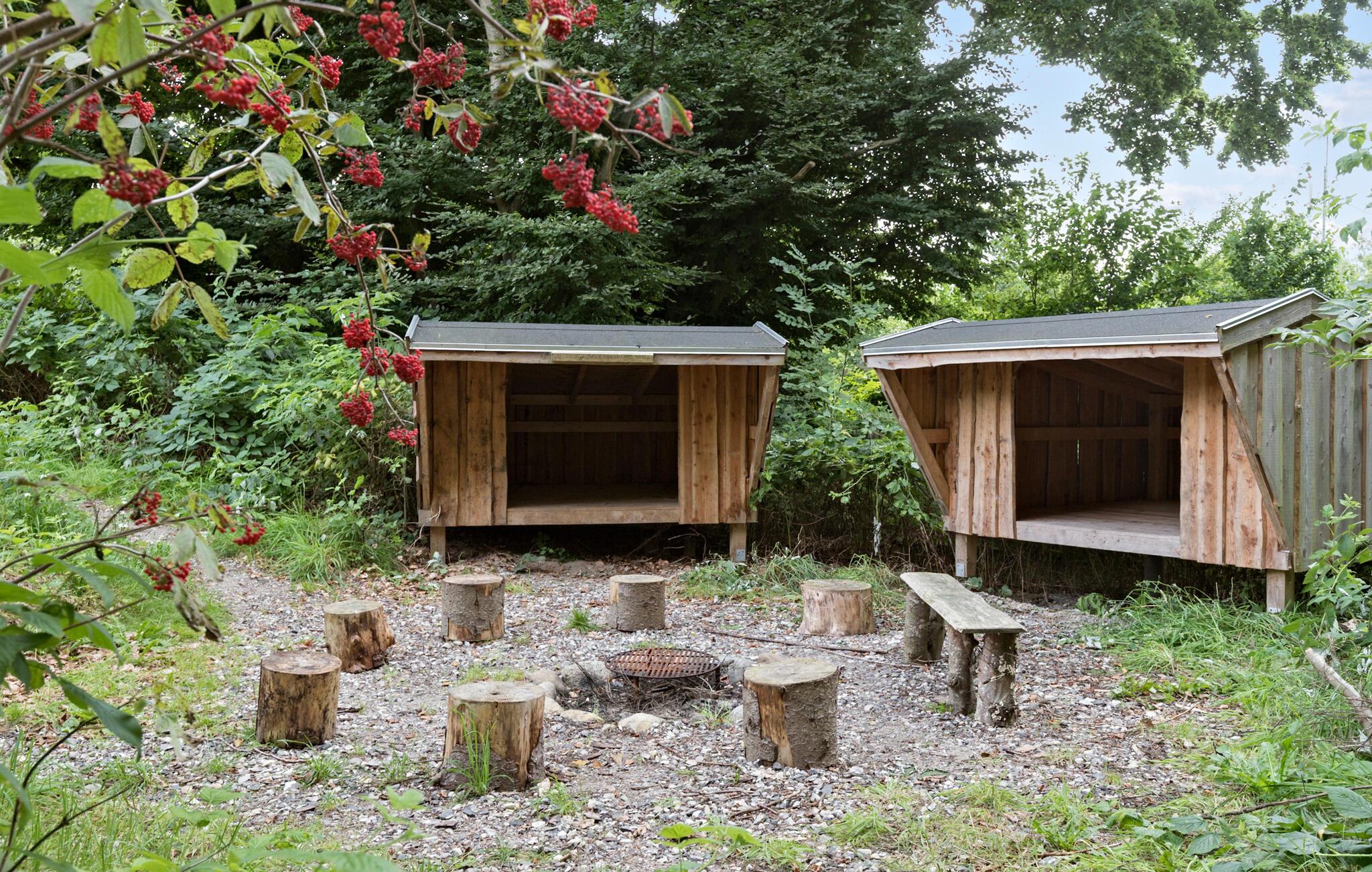 På de varme dage kan I nyde solen lige fra morgenstunden på den store, ugenerede grund, der omgiver huset. Her er der masser af plads at boltre sig på for børnene samt en trampolin, gynge og sandkasse, de kan brænde energi af på. Køb ind til det helt store grillmåltid, nyd maden ved bordebænkesættene, og måske de helt friske skal overnatte i shelterne under stjernerne?