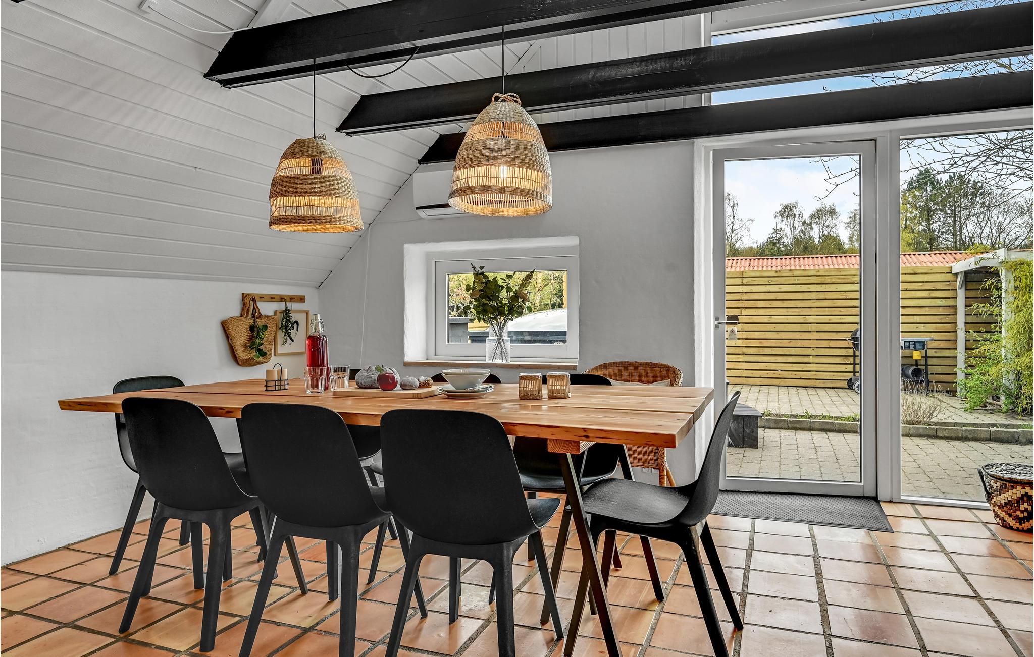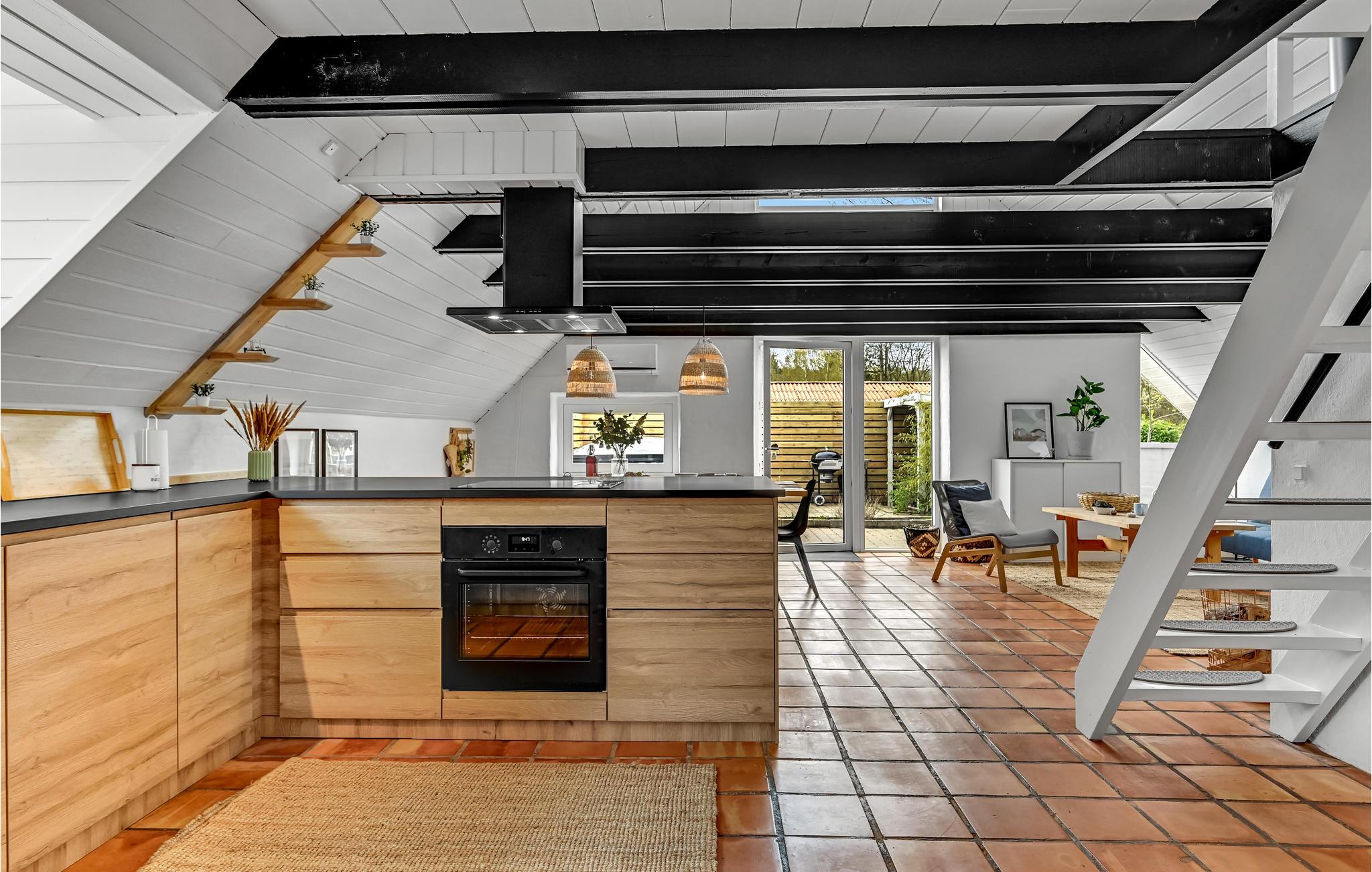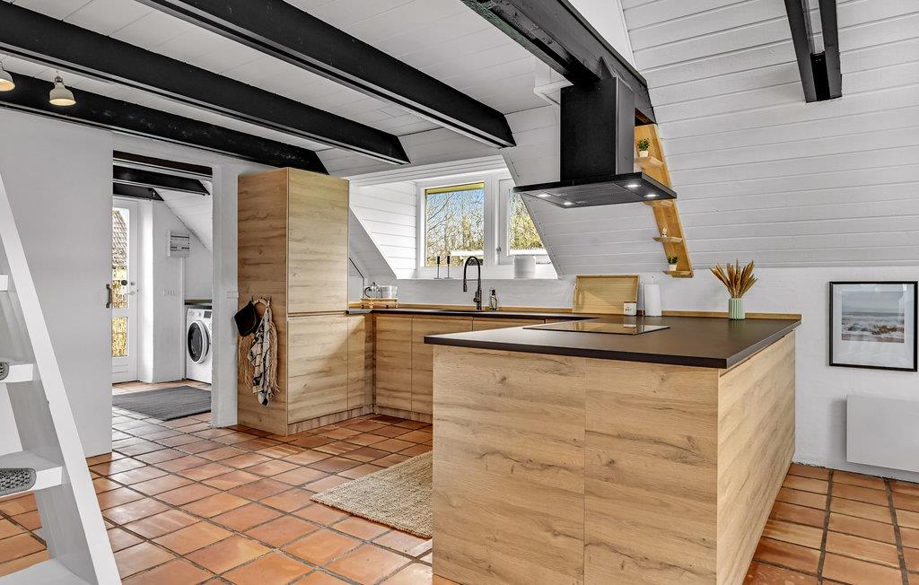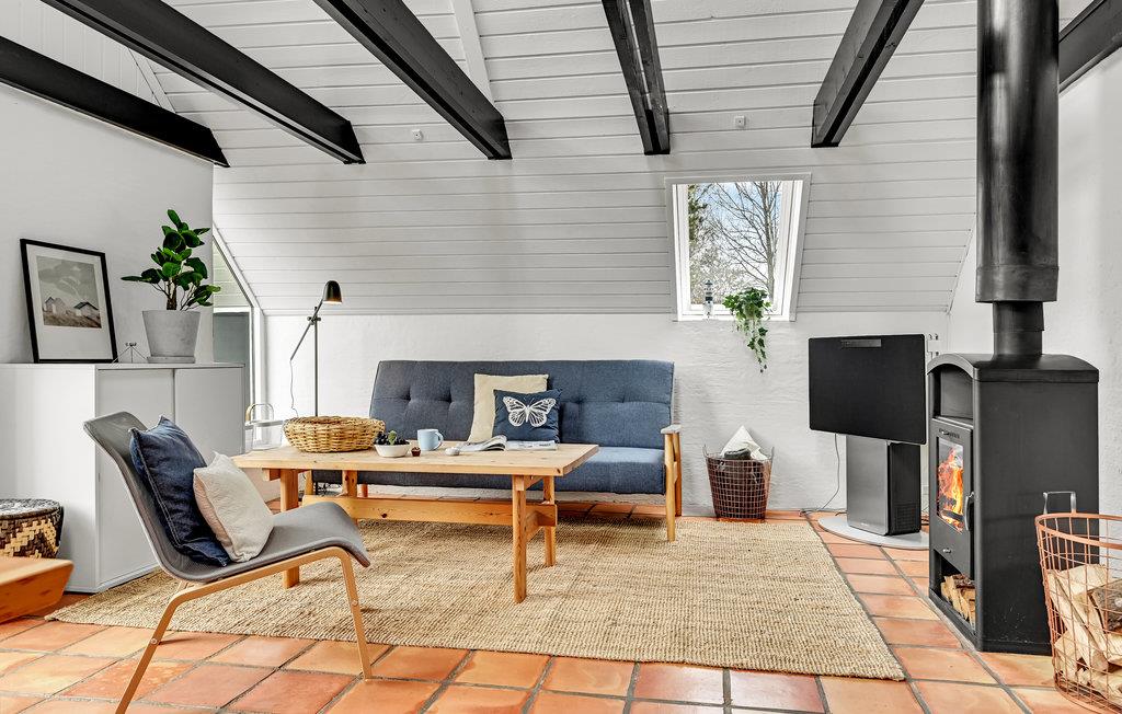 Dette sommerhus byder jer velkommen i dejlige naturomgivelser og er det ideelle sted for en aktiv ferie med smukke naturoplevelser tæt på havet. Her vil hele familien føle sig godt tilpas. Den hjemlige indretning med smukke klinkegulve, skønne træelementer og synlige loftsbjælker giver sommerhuset en særlig charme. Om aftenen kan I tænde op i brændeovnen og tilbringe hyggelige timer sammen til flammernes stille knitren.