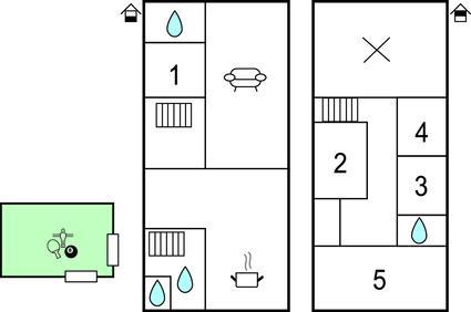 Soveværelse (nr. 5) - 1 Soveplads. (Enkeltseng(e)). 2 Sovepladser. (Dobbeltseng(e)).