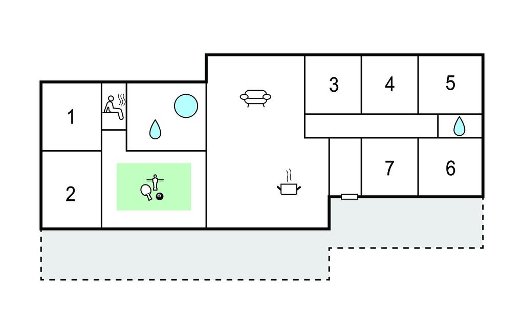 Dette moderne og komfortable sommerhus tilbyder masser af plads til længe ventede familiesammenkomster eller en hyggelig ferie med vennerne. Nyd dagens måltider ved det lange spisebord og snup et spil billard, bordtennis eller arkadespil, mens andre slapper af i saunaen eller spabadet. Det er også altid hyggeligt at finde sammen til gode snakke i de bløde sofaer.