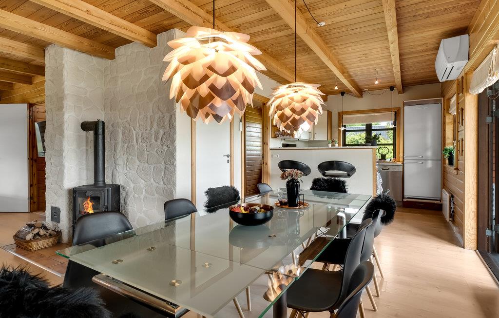 Huset, som har en spændende arkitektur, er bygget i to etager. Det er godt udstyret med bl.a. spabad og sauna, ligesom det også er velindrettet med bl.a. fem soverum, alle med dobbeltsenge og to badeværelser.