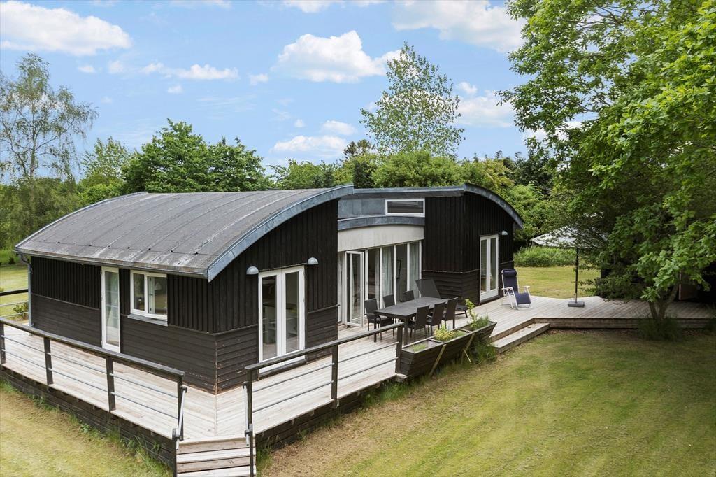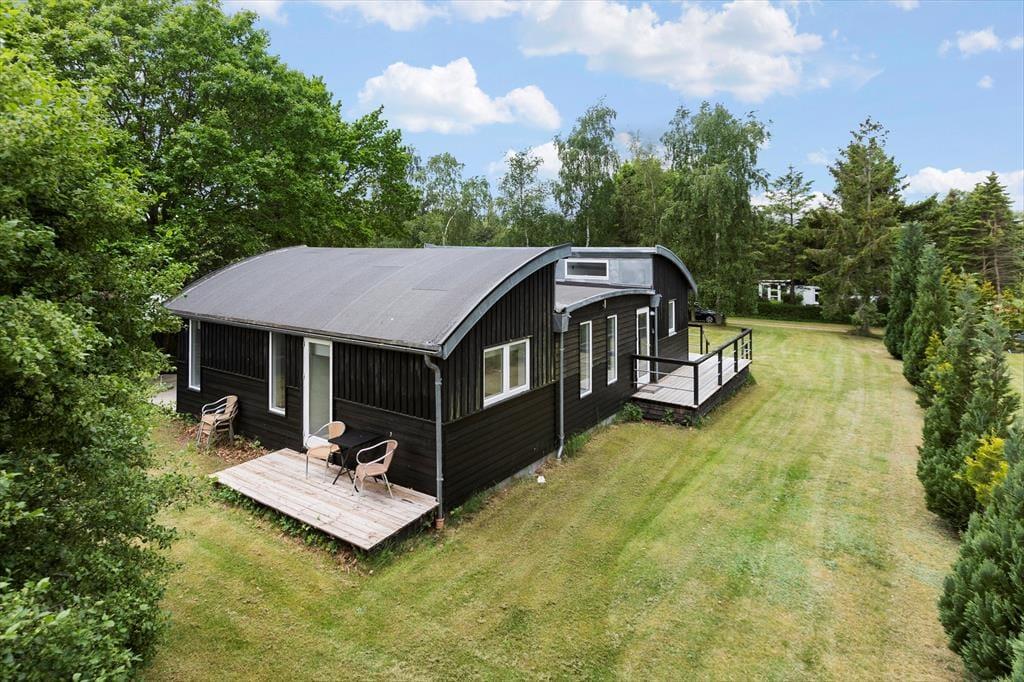 Sommerhuset er beliggende på en stor grund ca. 1.219m² med græsplæne og kantbeplantning. Der er træterrasser rundt om huset. Der er havegrill, havemøbler, 1 liggestol, 1 solseng og parasol.