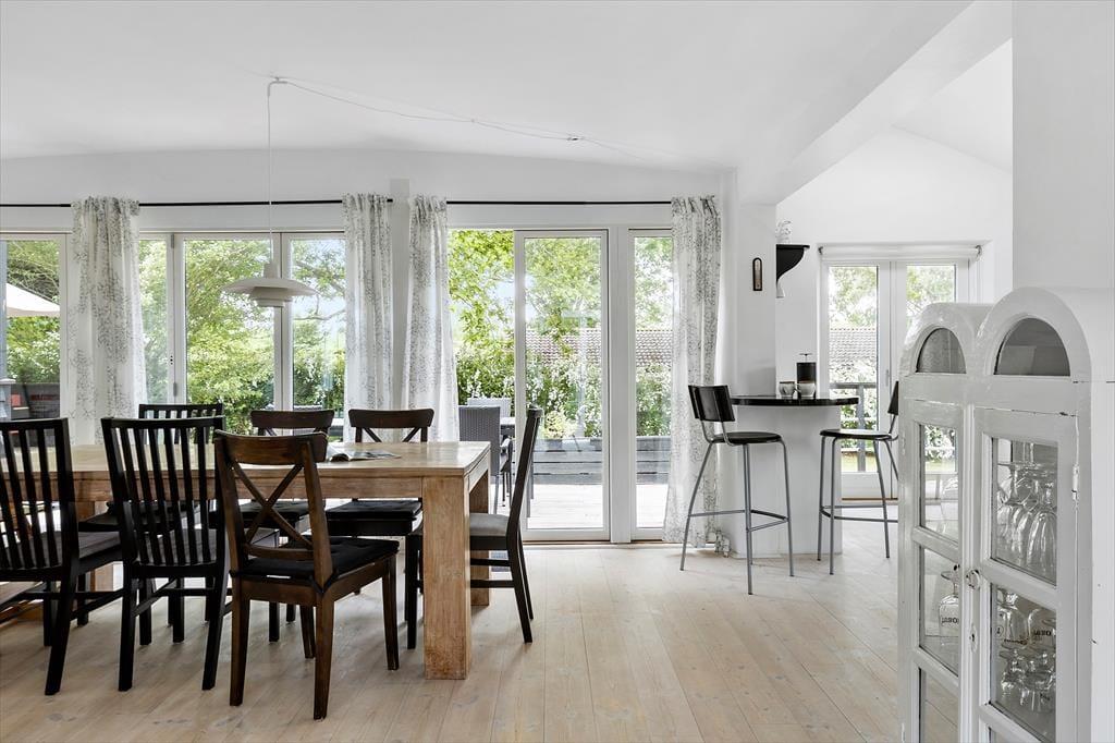 Lyst og indbydende sommerhus, kun 400 meter fra Bønsvig strand, hvor der er rig mulighed for gode gåture og badning.